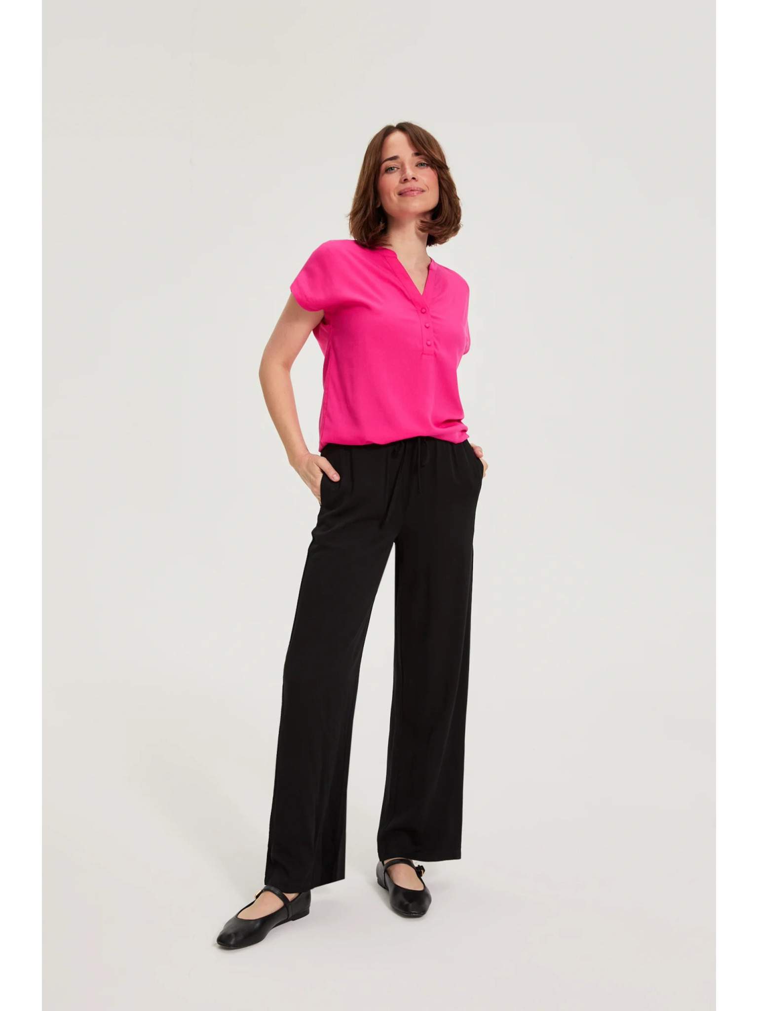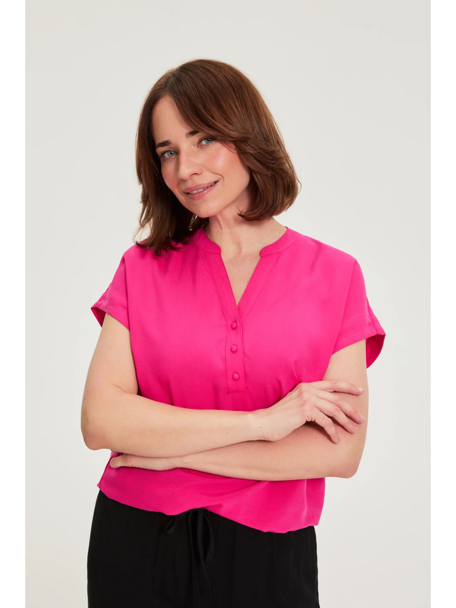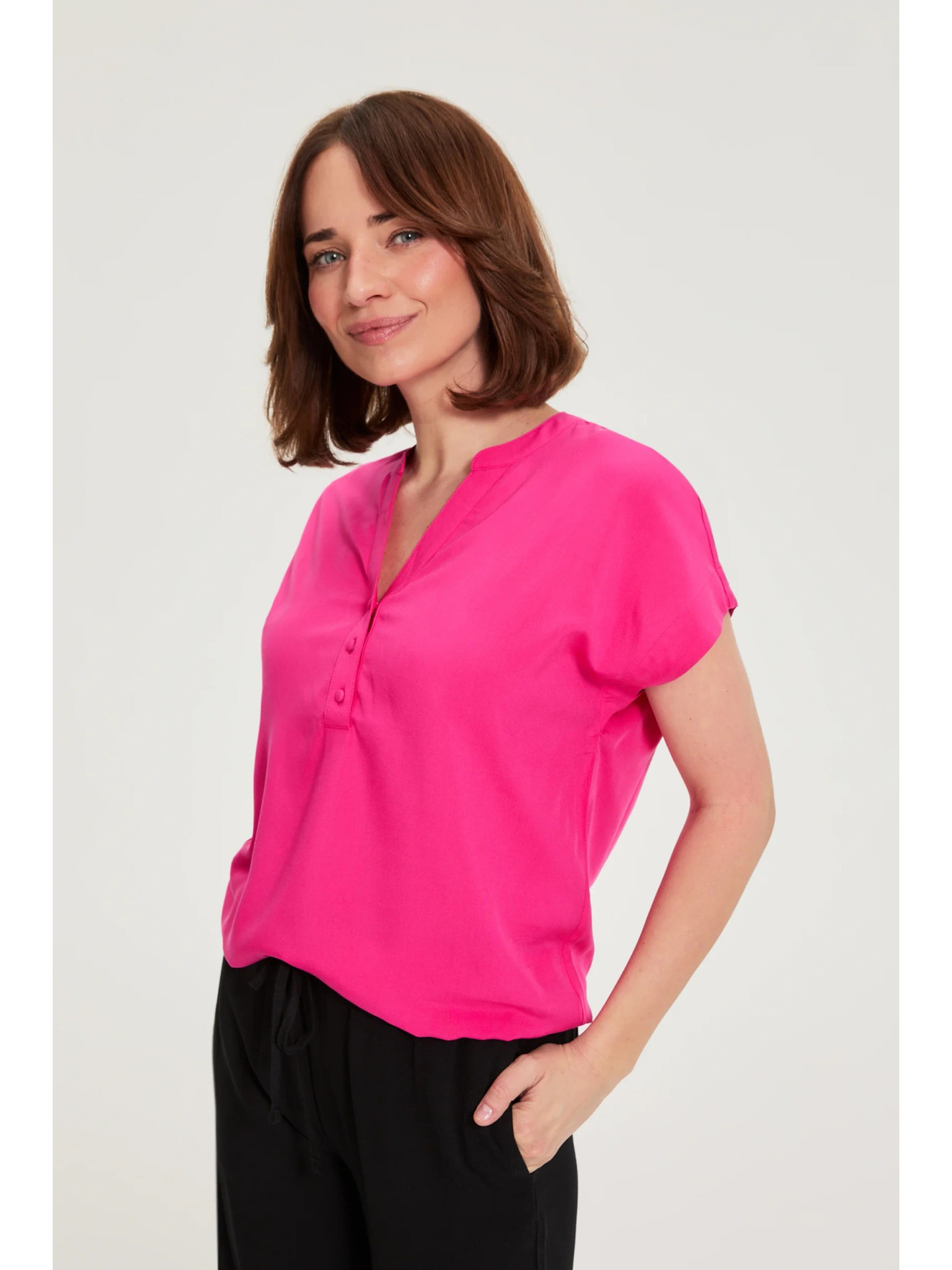 Fuchsiová košeľa s naberanými rukávmi Moodo