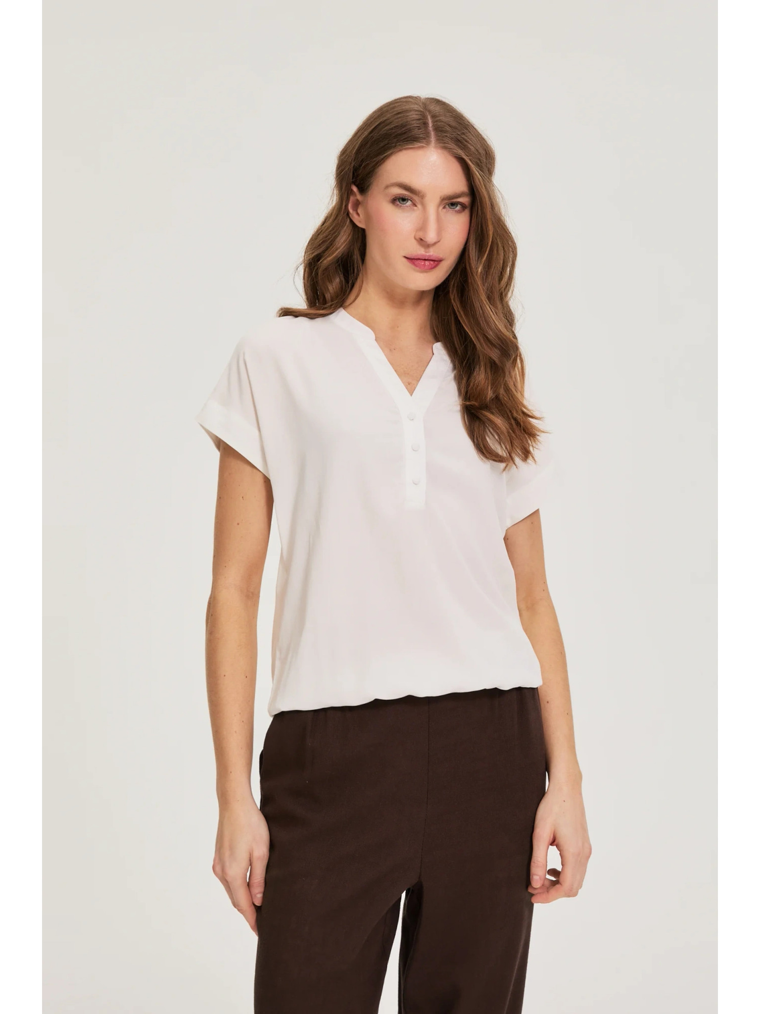 Biela blúzka s vyhrnutými rukávmi Moodo