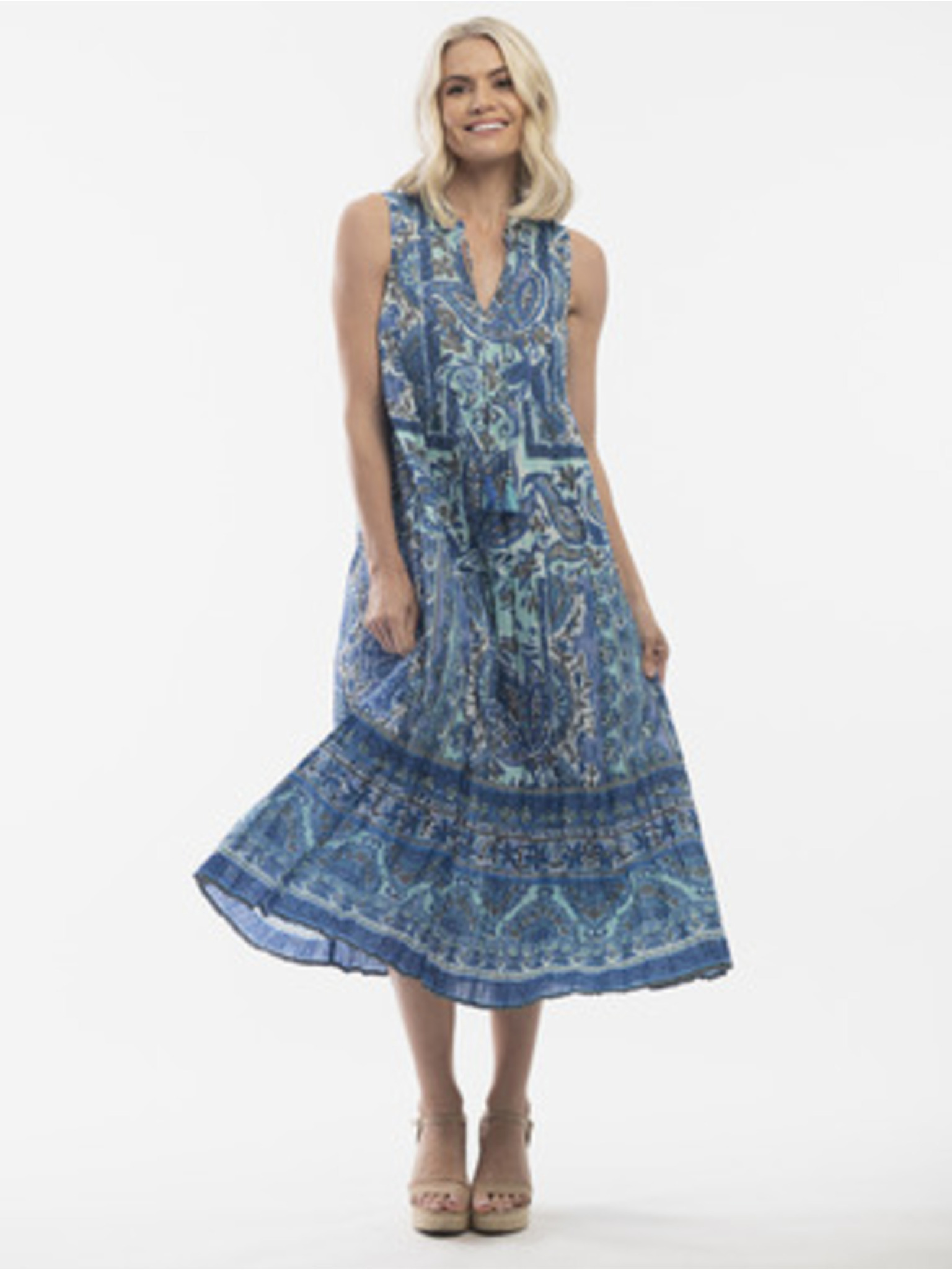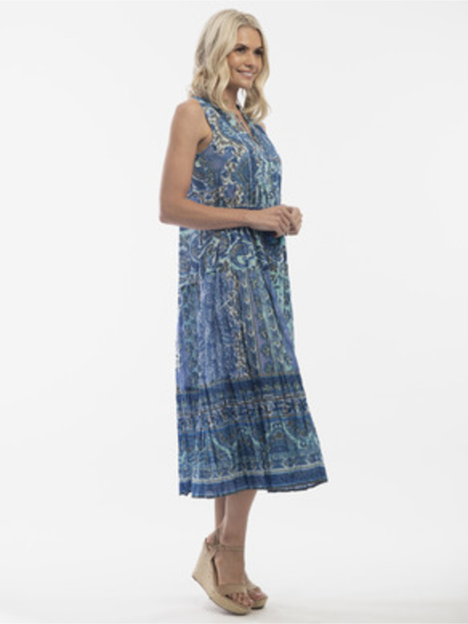 Modré dámske kvetované šaty s prímesou ľanu Orientique