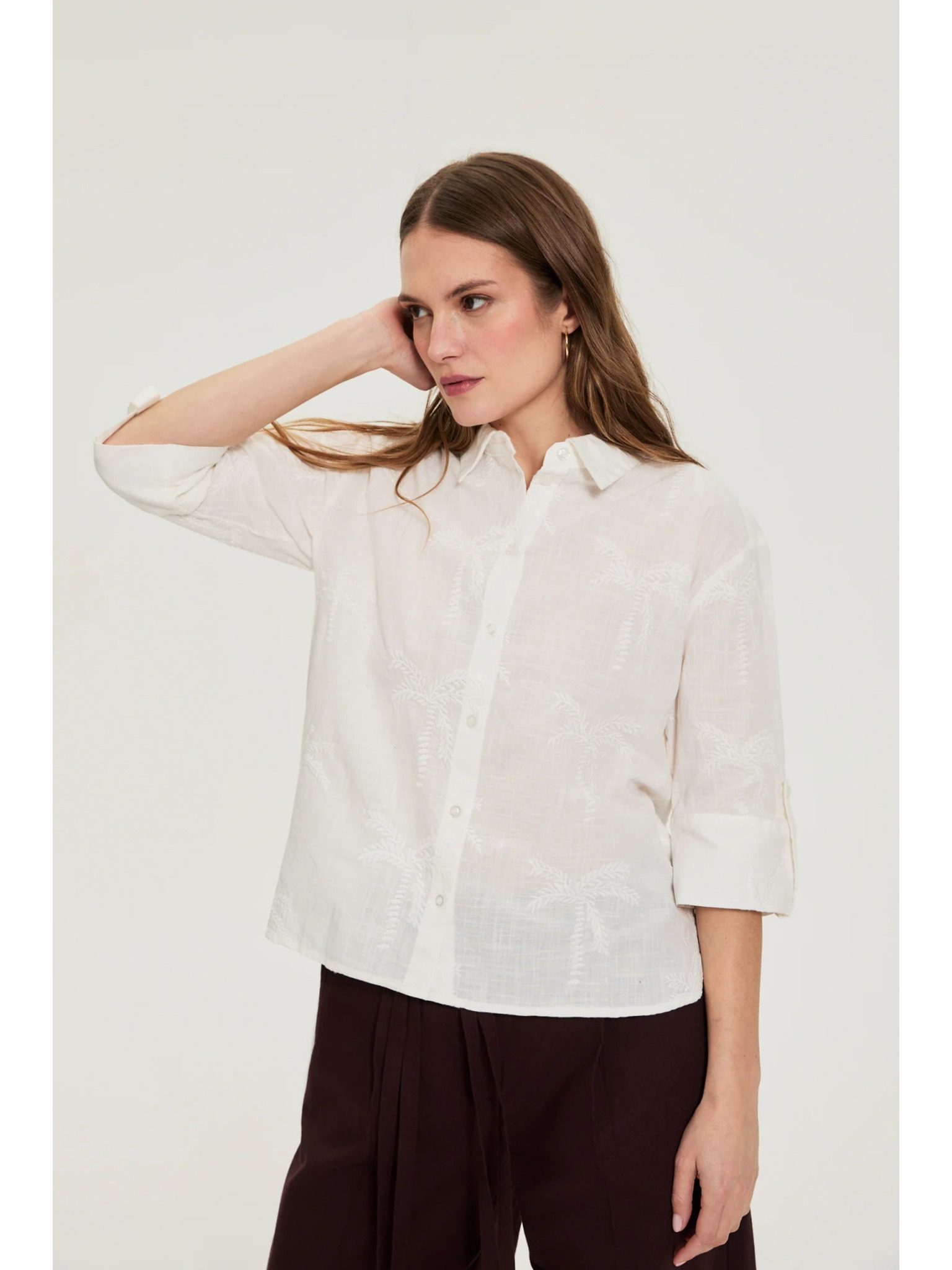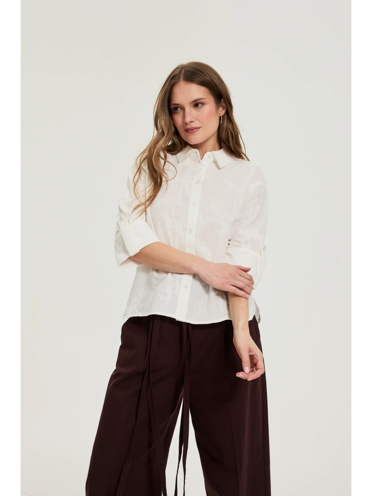 Biela blúzka s vyhrnutými rukávmi Moodo