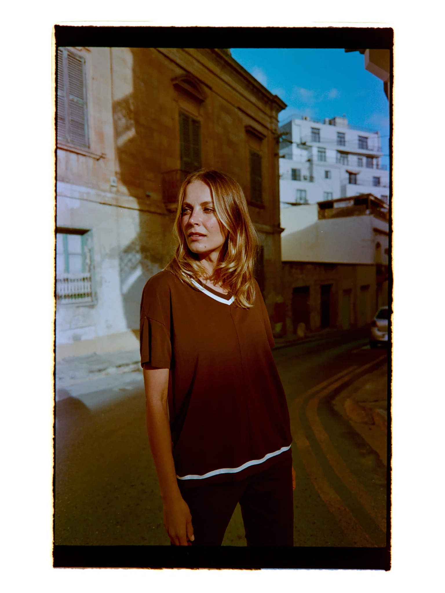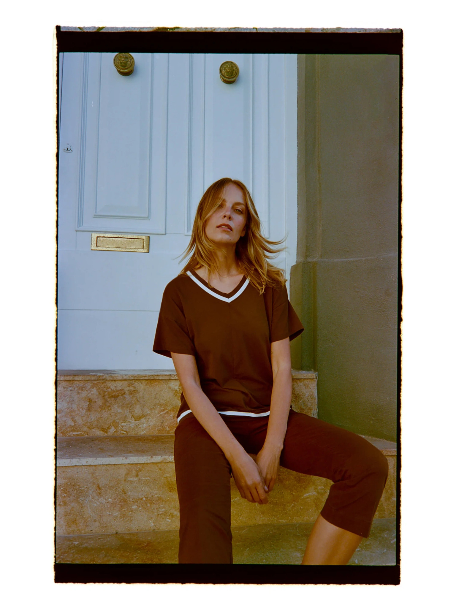 Tričko s výstrihom hnedé Moodo