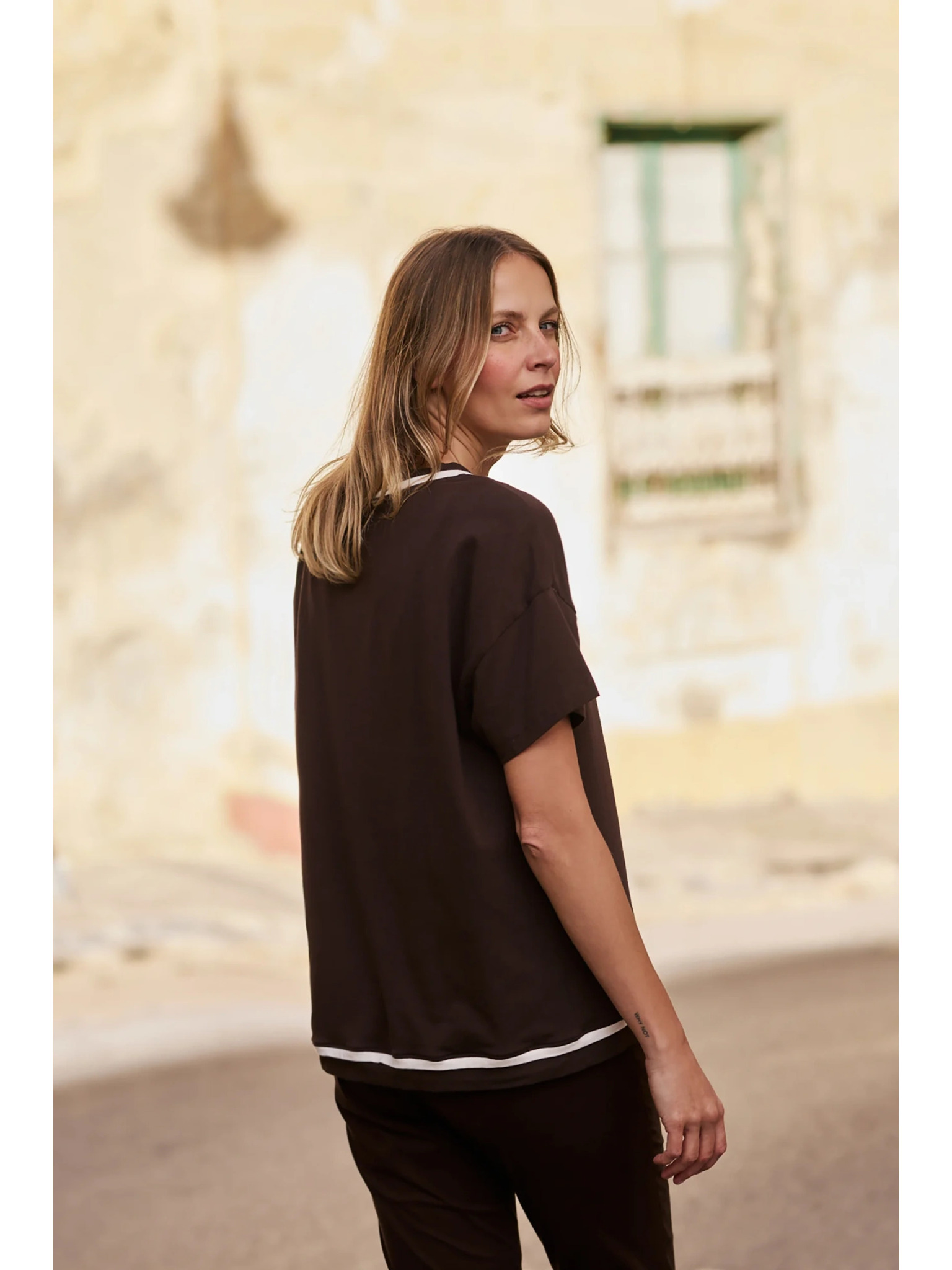 Dámske hnedé tričko so zaväzovaním