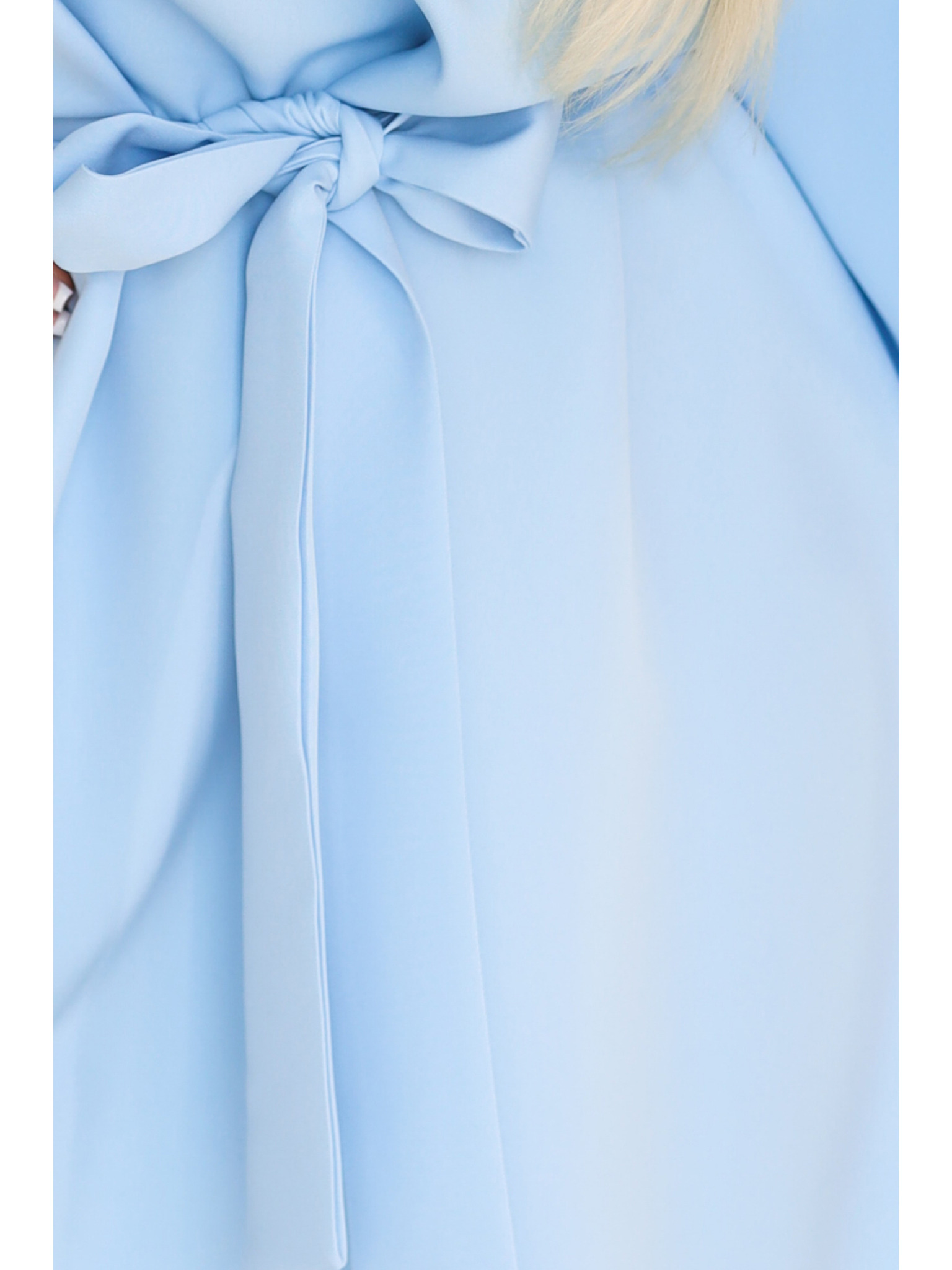 Saténové dlhé šaty s exkluzívnym výstrihom na chrbte - modré Numoco PERLA