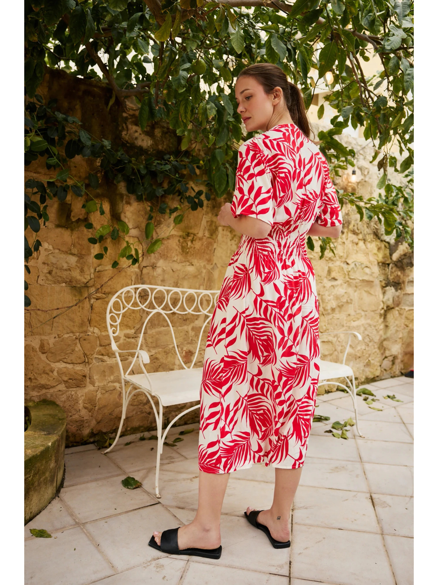 Červené midi šaty s volánmi Moodo