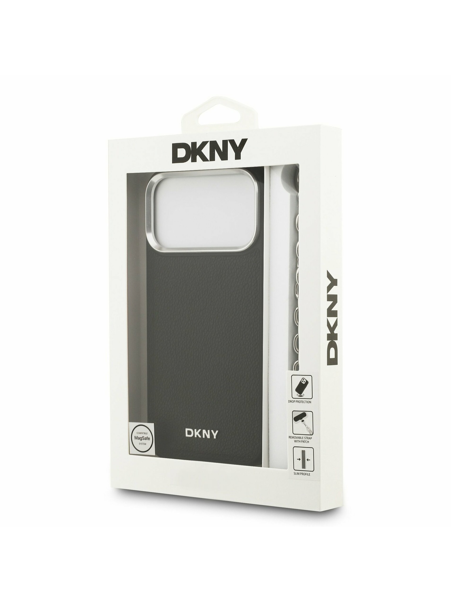 DKNY PU kožený zadný kryt s logom na zápästí pre iPhone 16 Pro Max Black