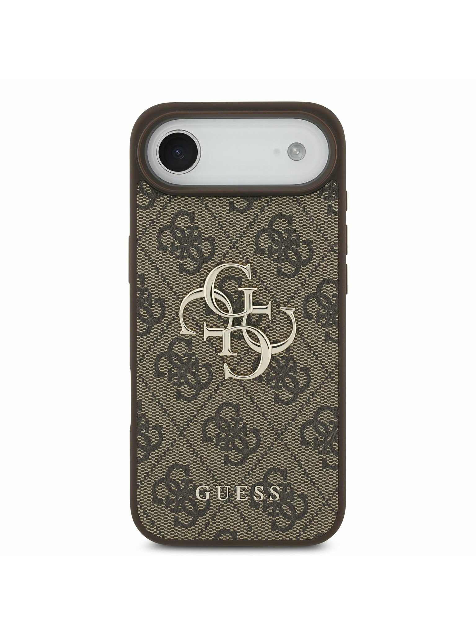 Guess PU Grained 4G Logo Stand Camera Frame Zadný Kryt pre iPhone 17 Pro Max Brown