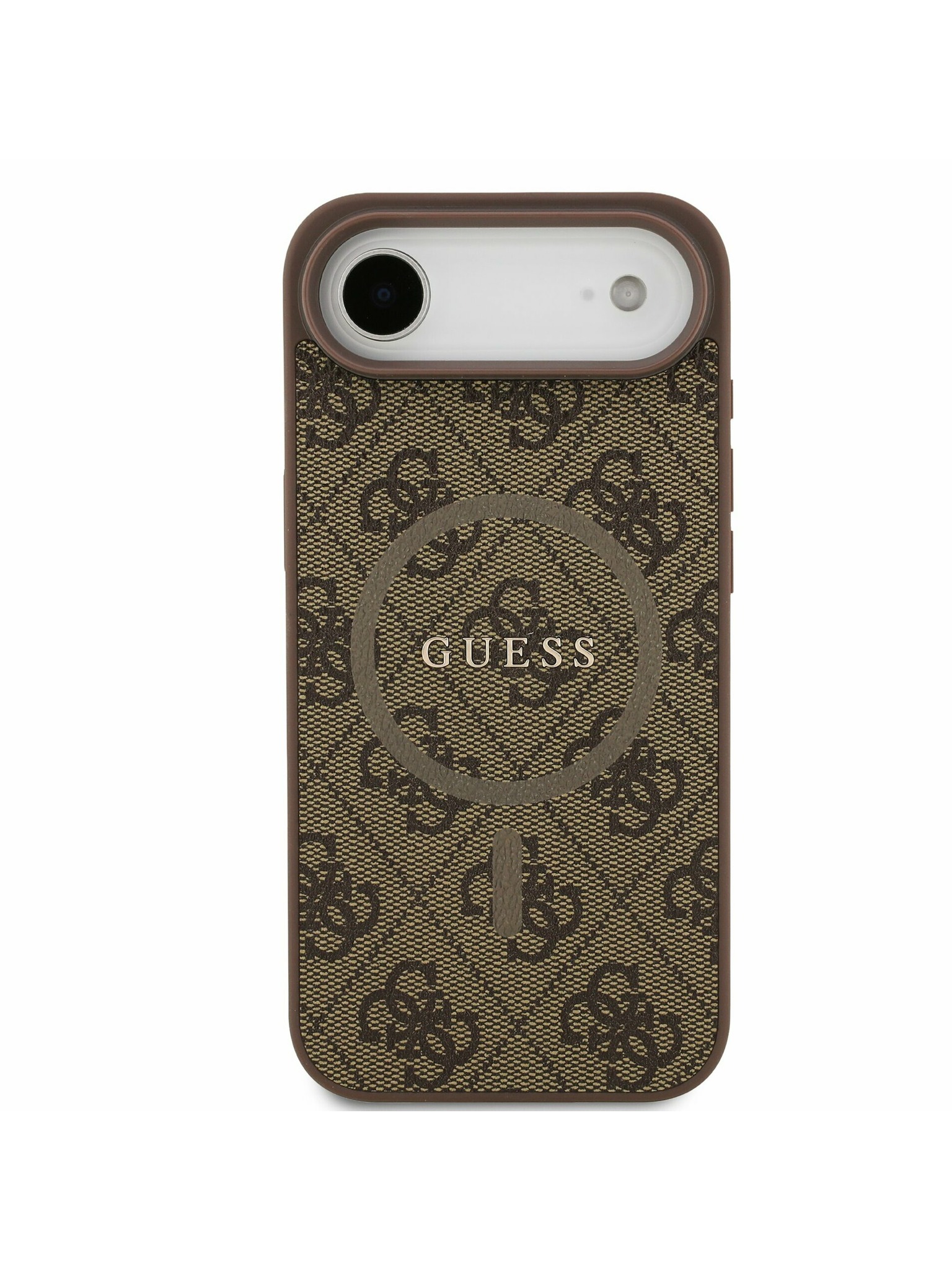 Guess PU Leather 4G Strass Triangle Logo Gold Frame MagSafe Zadný Kryt pre iPhone Air Brown