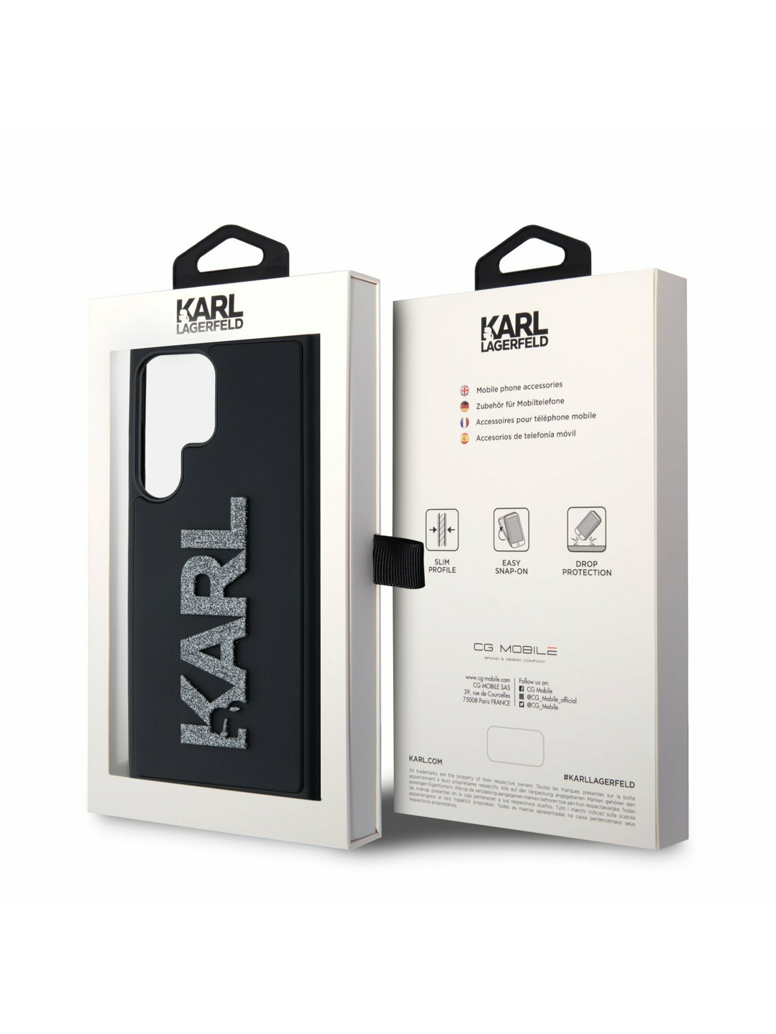 Karl Lagerfeld Fixed Glitter Metal K&CH zadný kryt pre iPhone 16e čierny