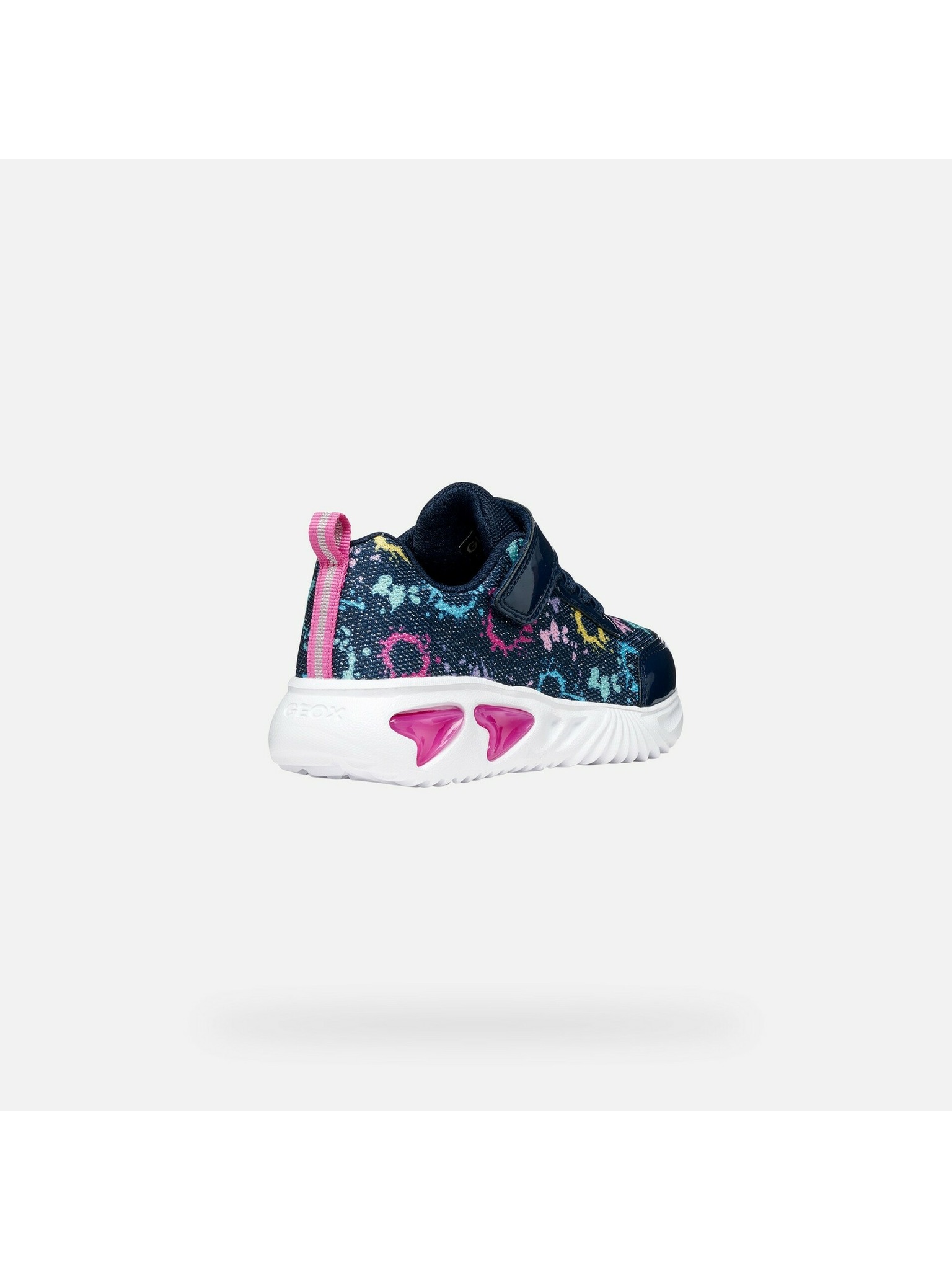 Tenisky Geox Assister spájajú hravý dizajn so svetielkami v podrážke a pohodlie na každodenné nosenie. Ľahká konštrukcia spolu s účinným tlmením nárazov zabezpečuje príjemný došľap pri chôdzi aj behu, zatiaľ čo svetelný efekt dodáva každému kroku zábavný charakter.