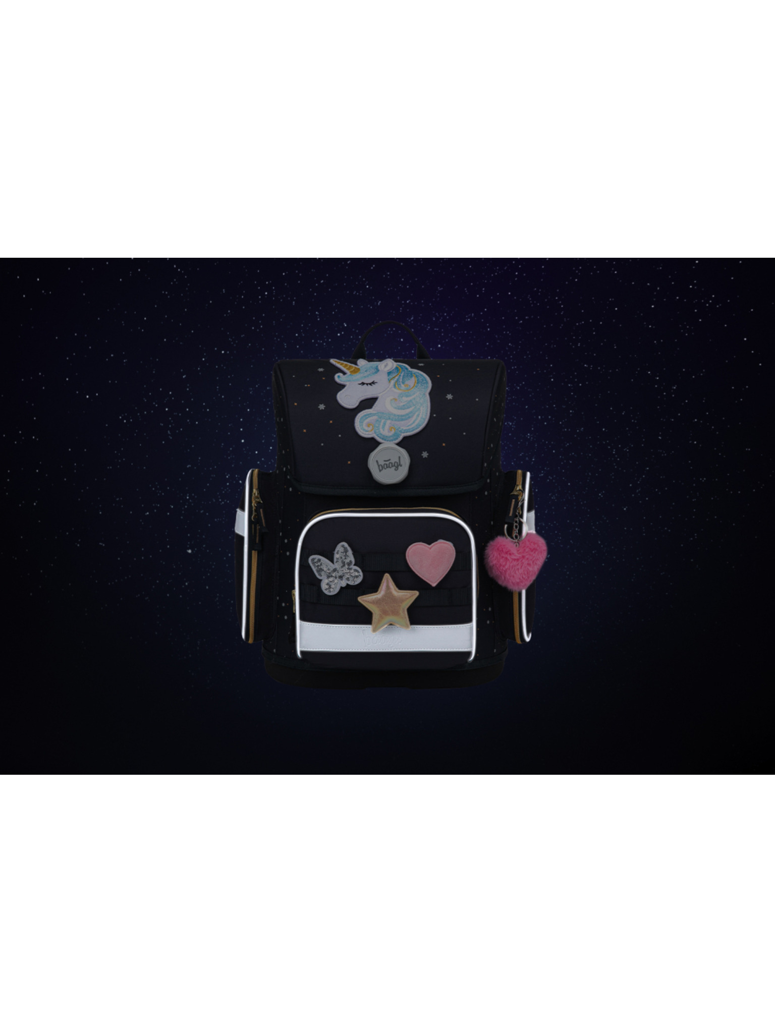 BAAGL SET 5 Ergo Unicorn Gold: aktovka, peračník, vrecko, zástera, peňaženka