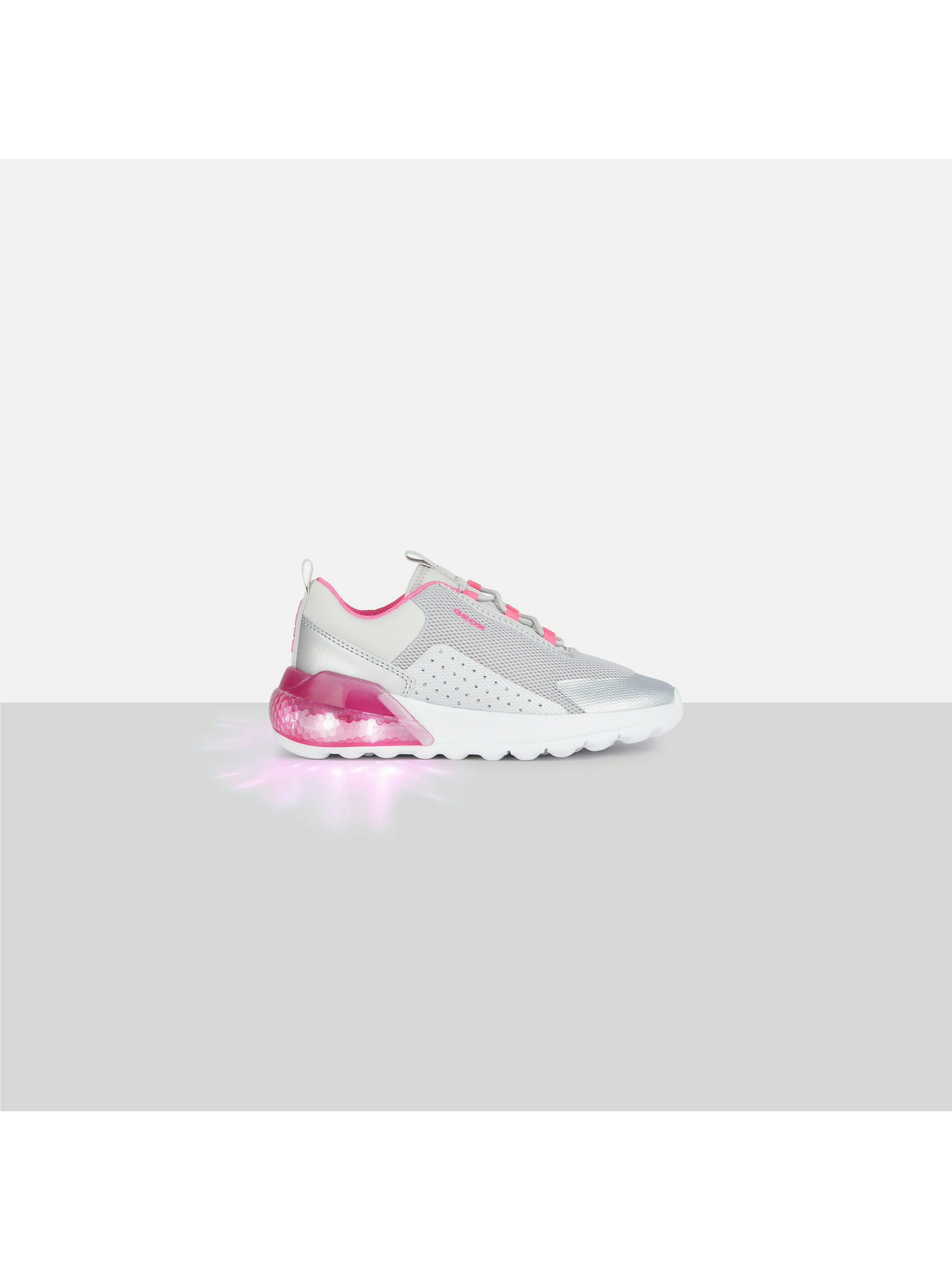 Strieborné dievčenské svietiace tenisky Geox Lightyloo