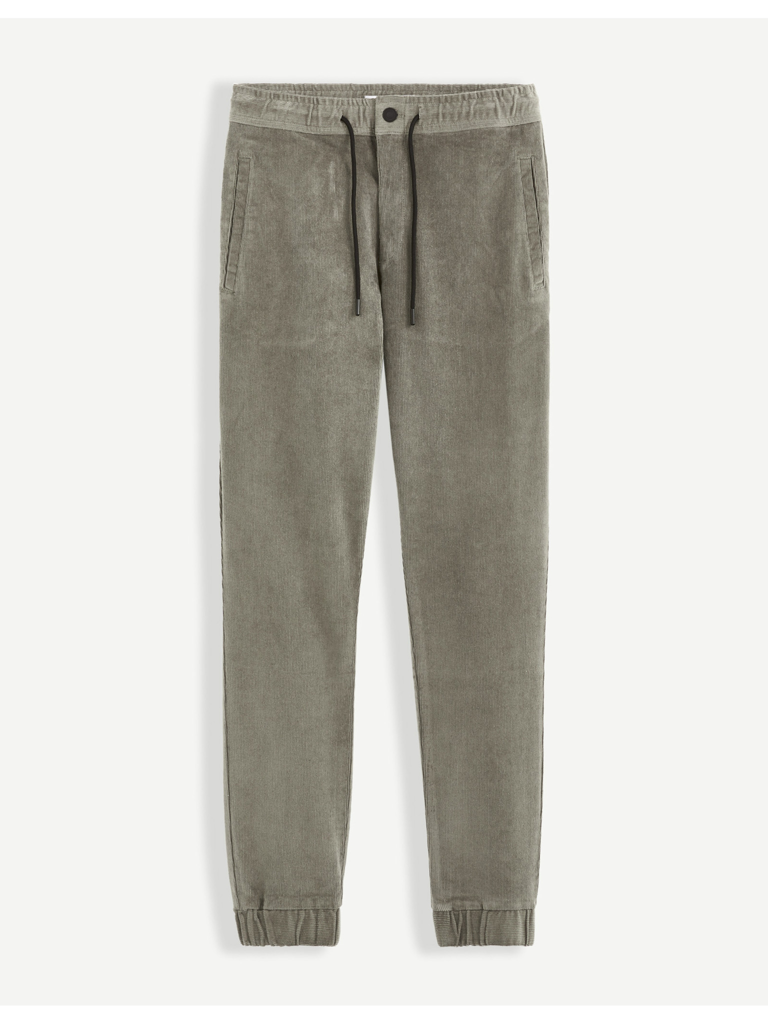 Pánske tepláky s lemovaním a rebrovanými nohavicami - olivové