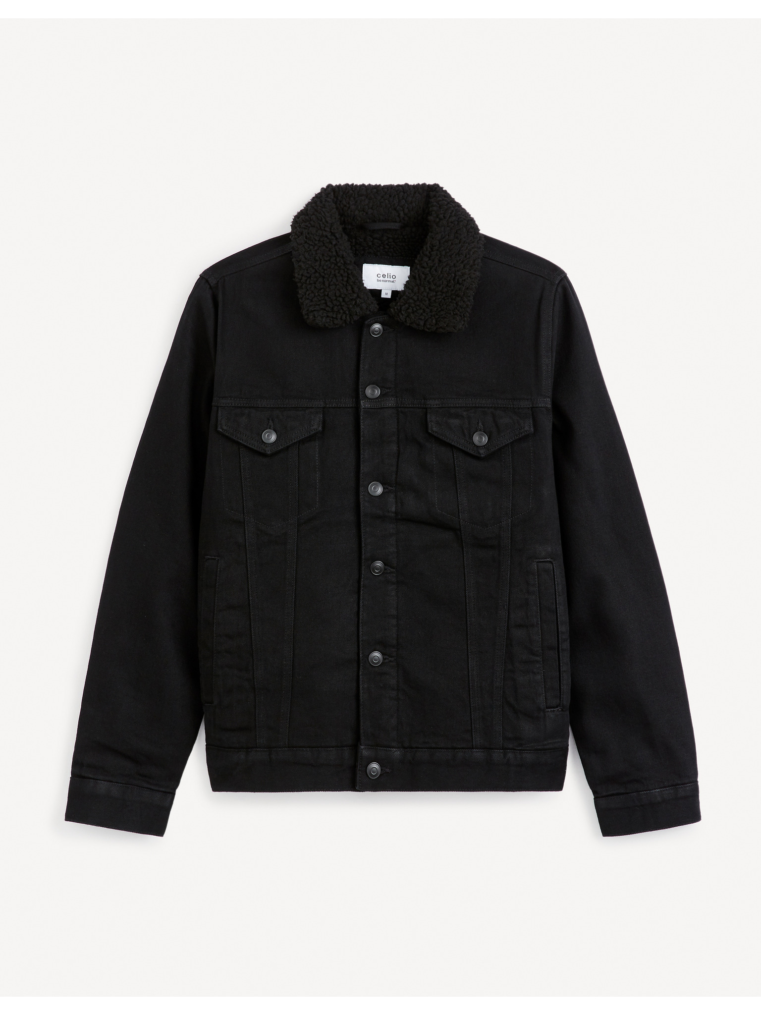 Pánska džínsová bunda bomber s efektom stone wash - čierna V2 OM-JADJ-0163 Ombre Clothing