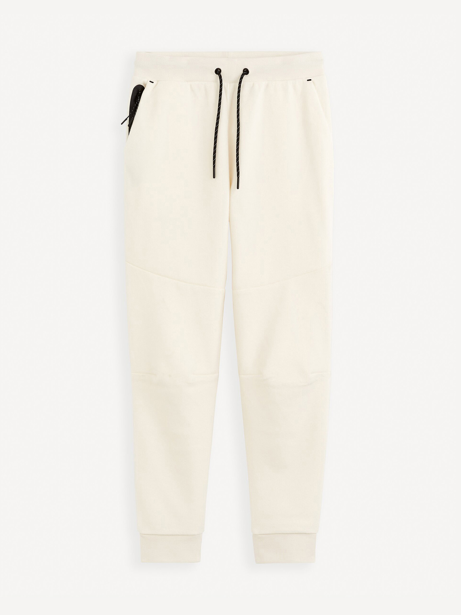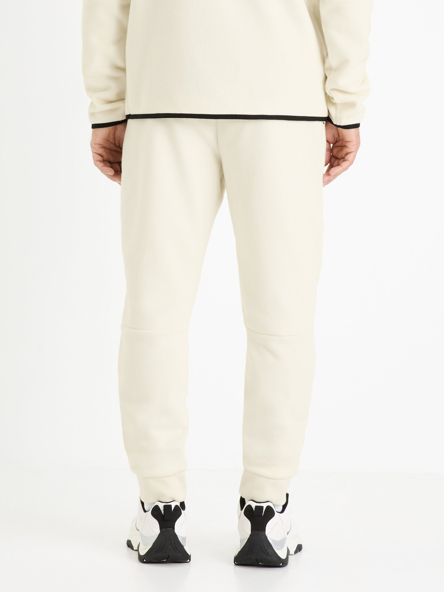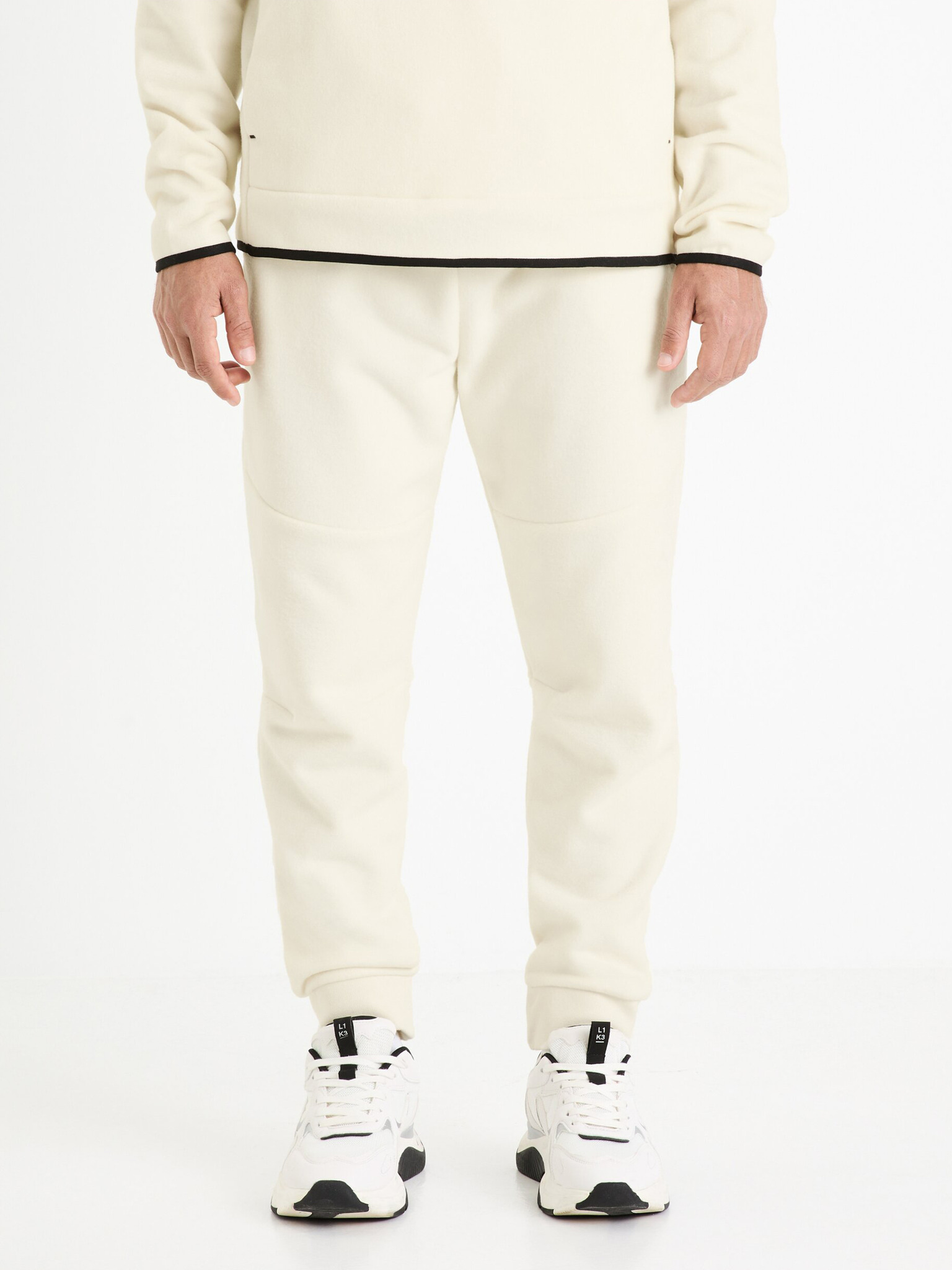 Pánske tepláky s lemovaním a rebrovanými lemami nohavíc - krémové