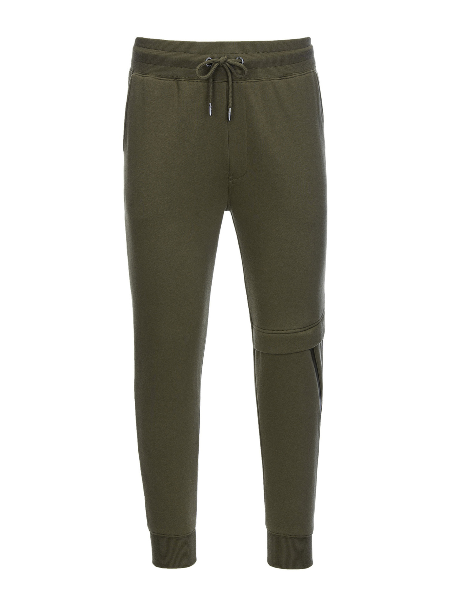 Pánske tepláky s lemovaním a rebrovanými nohavicami - olivové