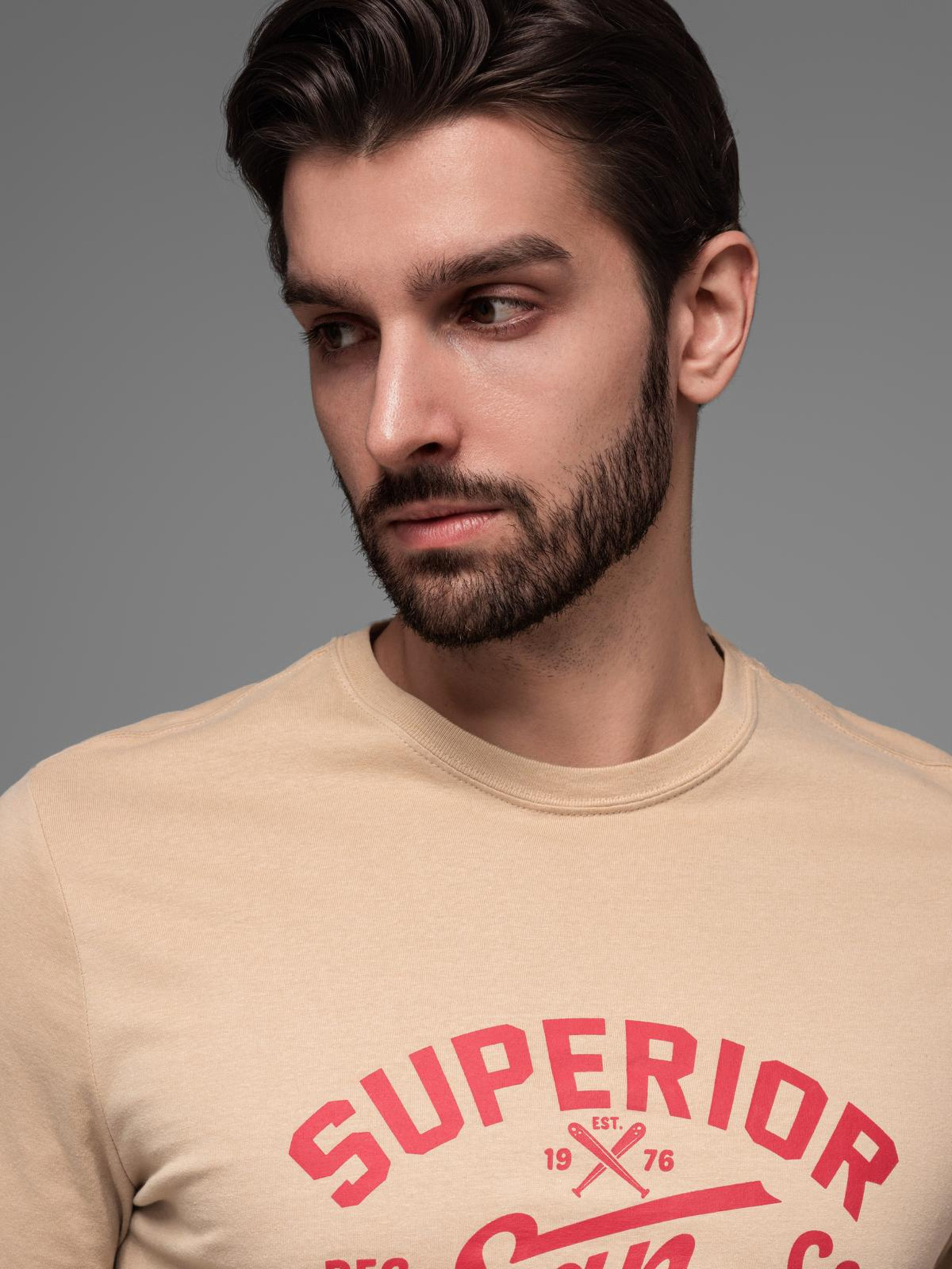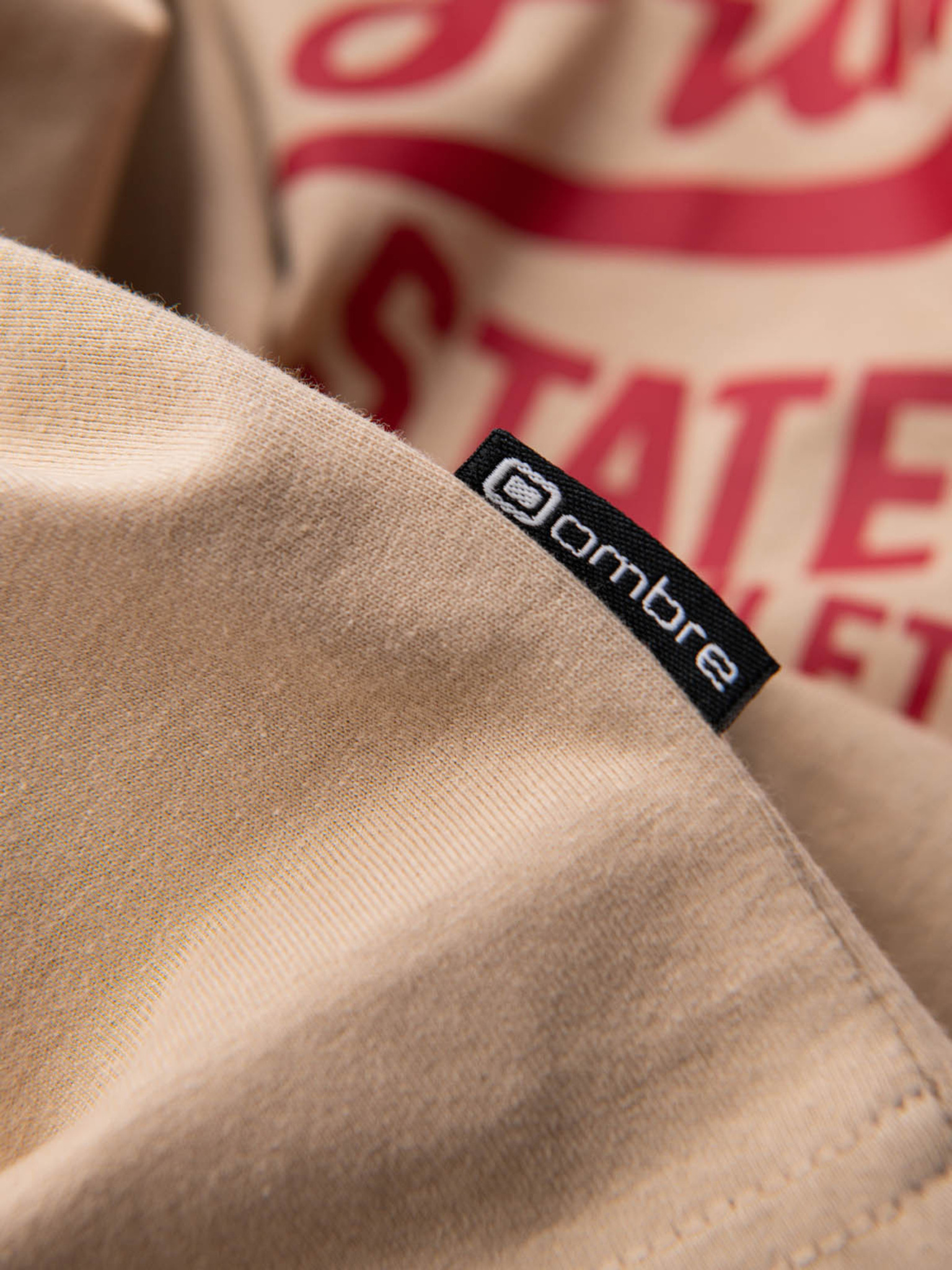 Pánske tričko s mestskou potlačou a dlhým rukávom - svetlo hnedé V1 OM-LSPT-0131 Ombre Clothing