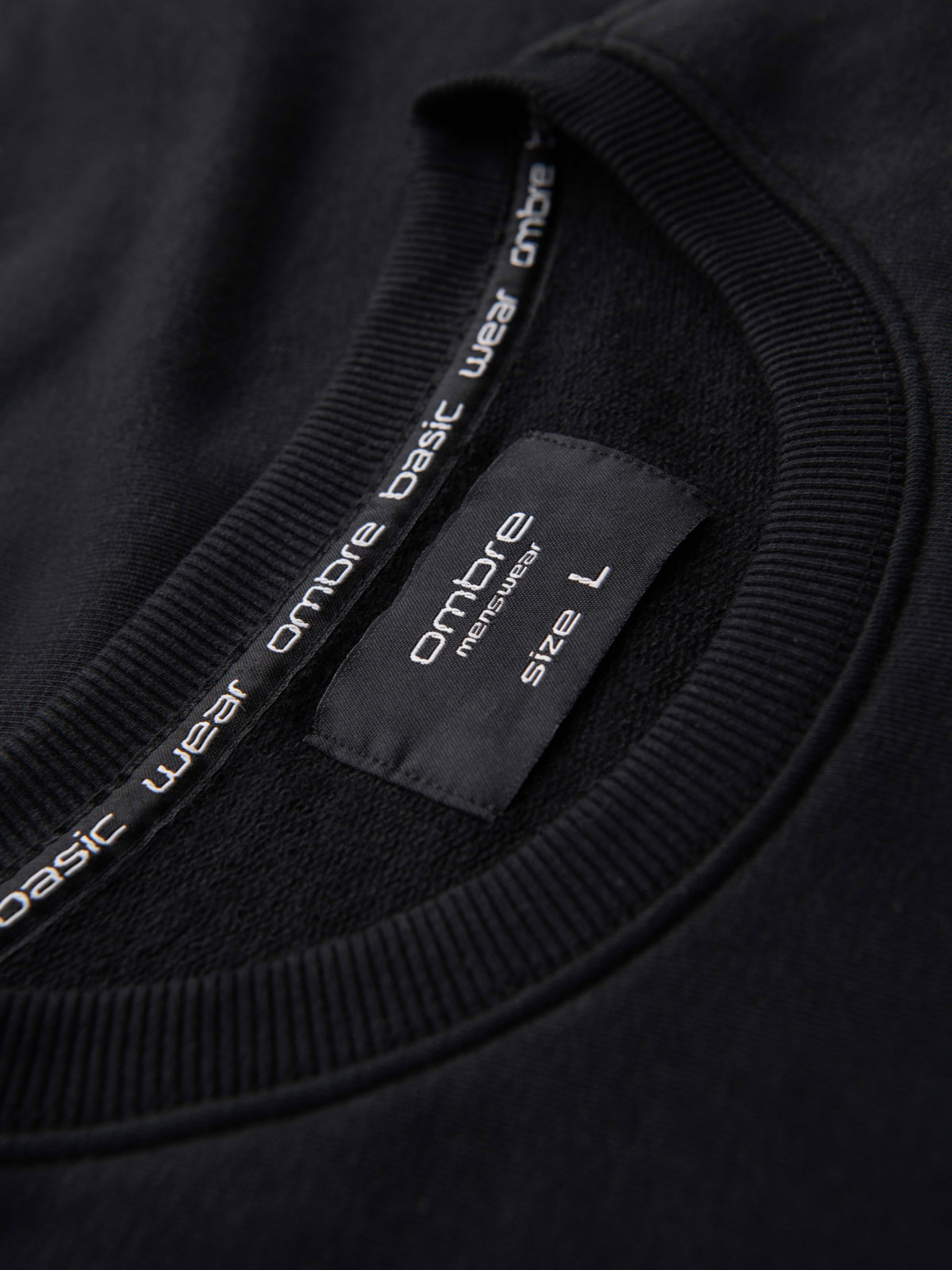 Pánska mikina s lesklým potlačou na hrudi - čierna V1 OM-SNBC-0199 Ombre Clothing