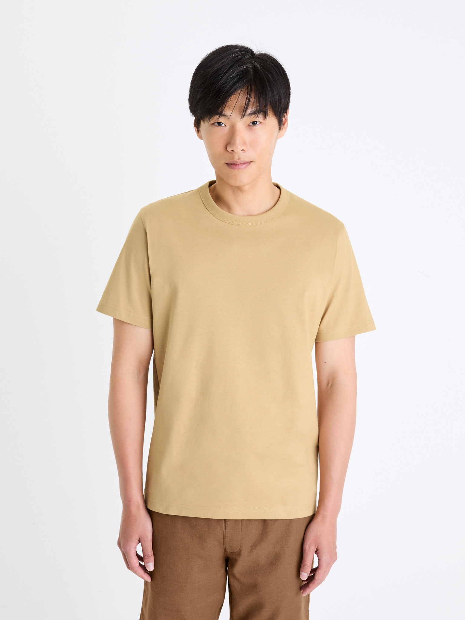 Pánske klasické bavlnené tričko BASIC - piesková