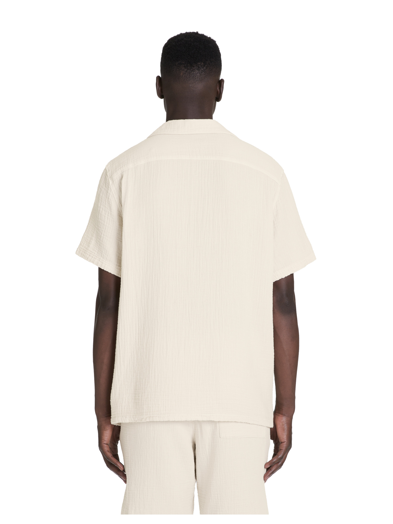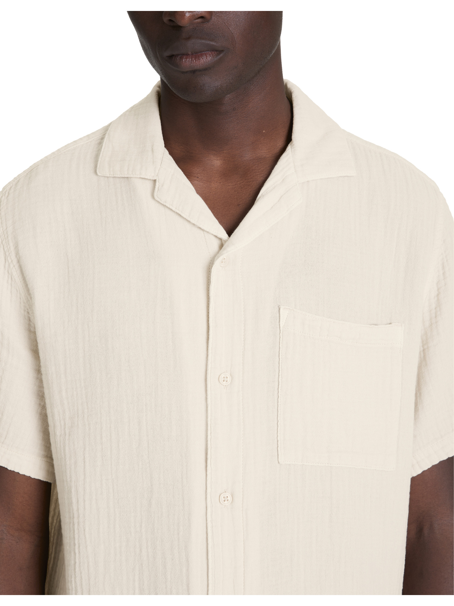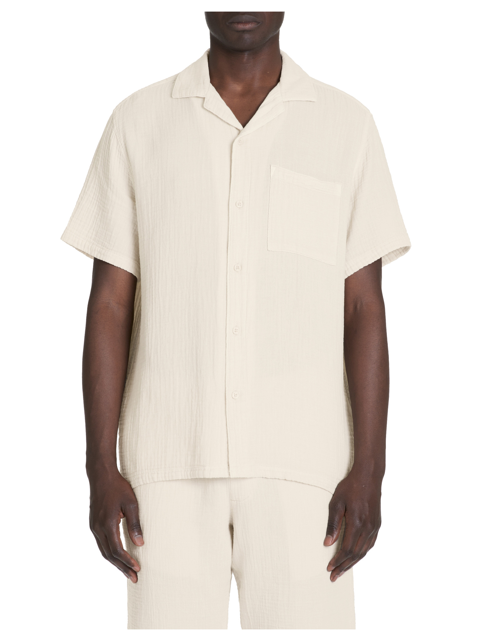Pánska košeľa s krátkym rukávom a kubánskym golierom biela Ombre Clothing
