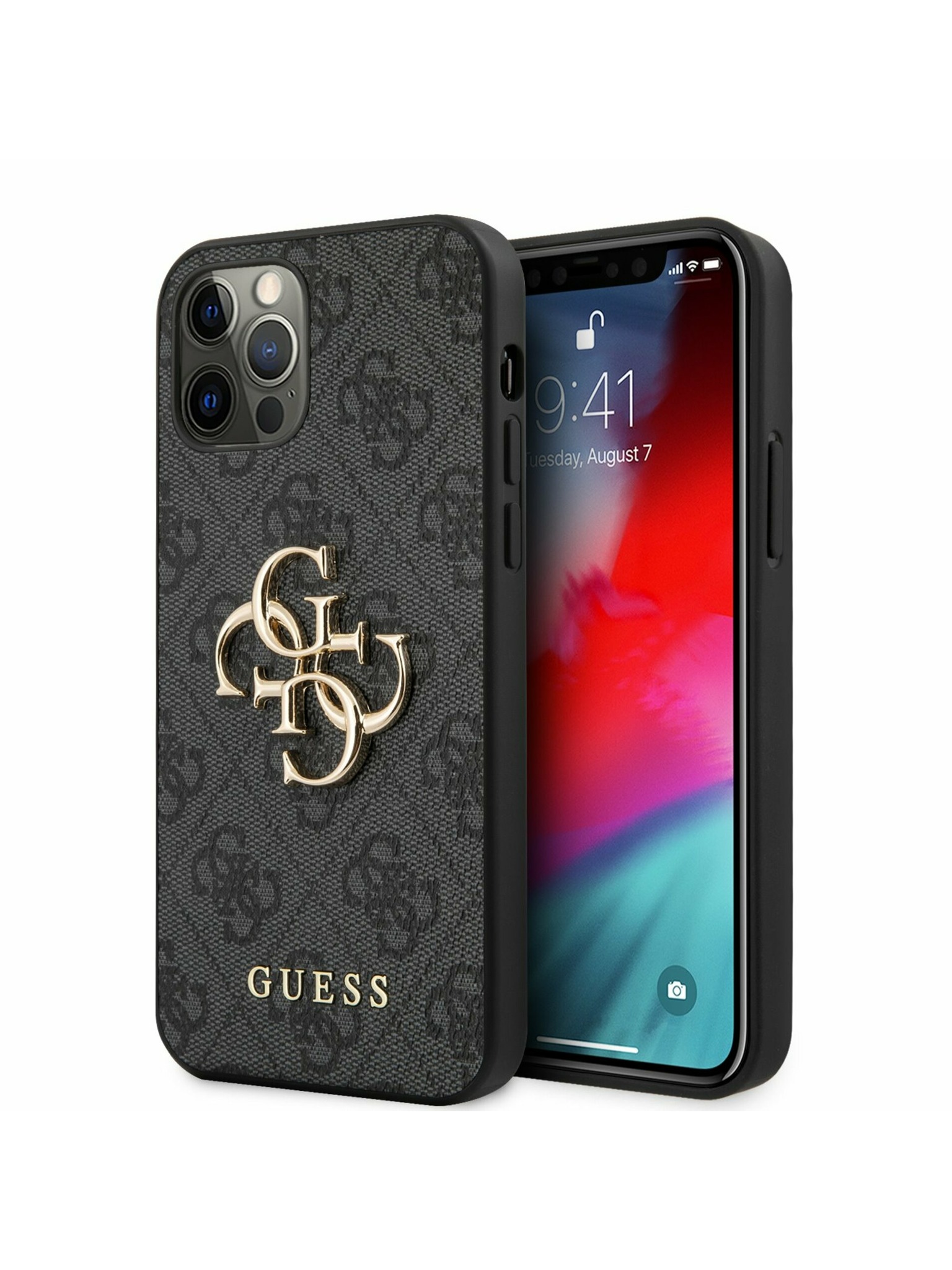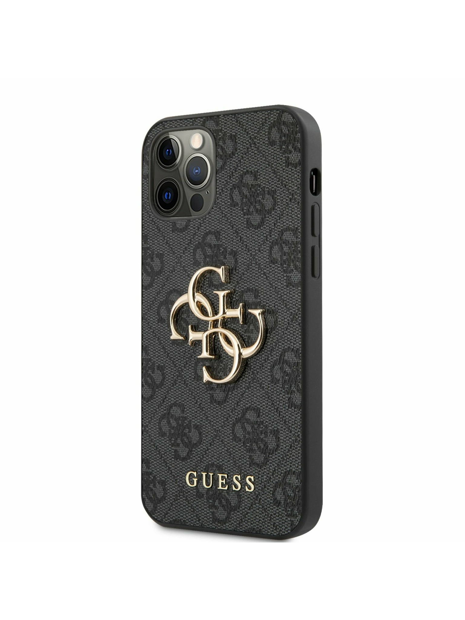 PU 4G Metal Logo Zadní Kryt pro iPhone 12/12 Pro Grey Obal na telefón