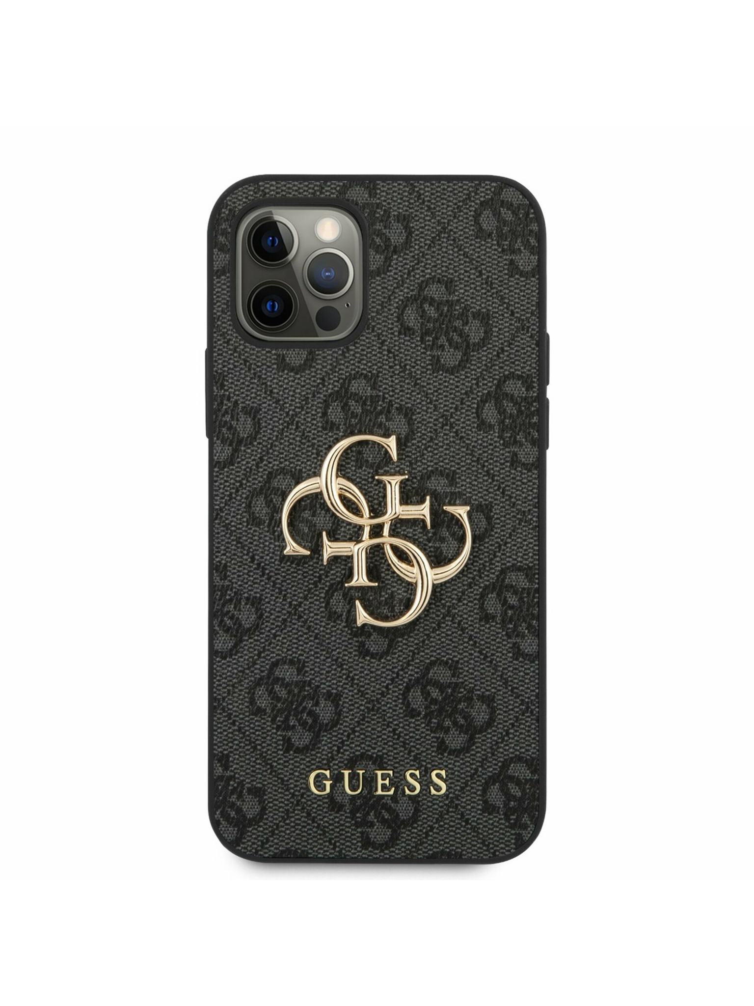 Guess PU Grained 4G Logo Stand Camera Frame Zadný Kryt pre iPhone 13 Black