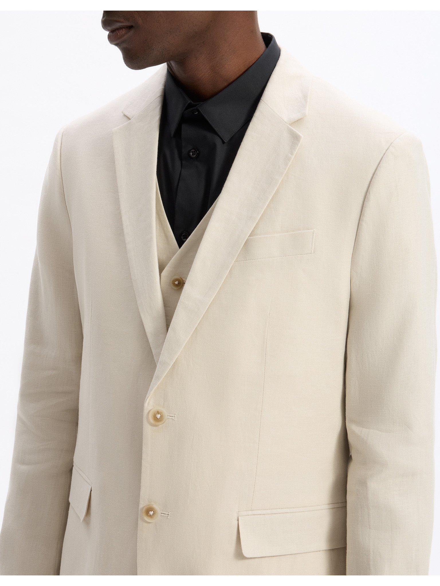 • Materiál: 100% Ľan Podšívka: 100% Polyester Podšívka rukávov: 100% Polyester