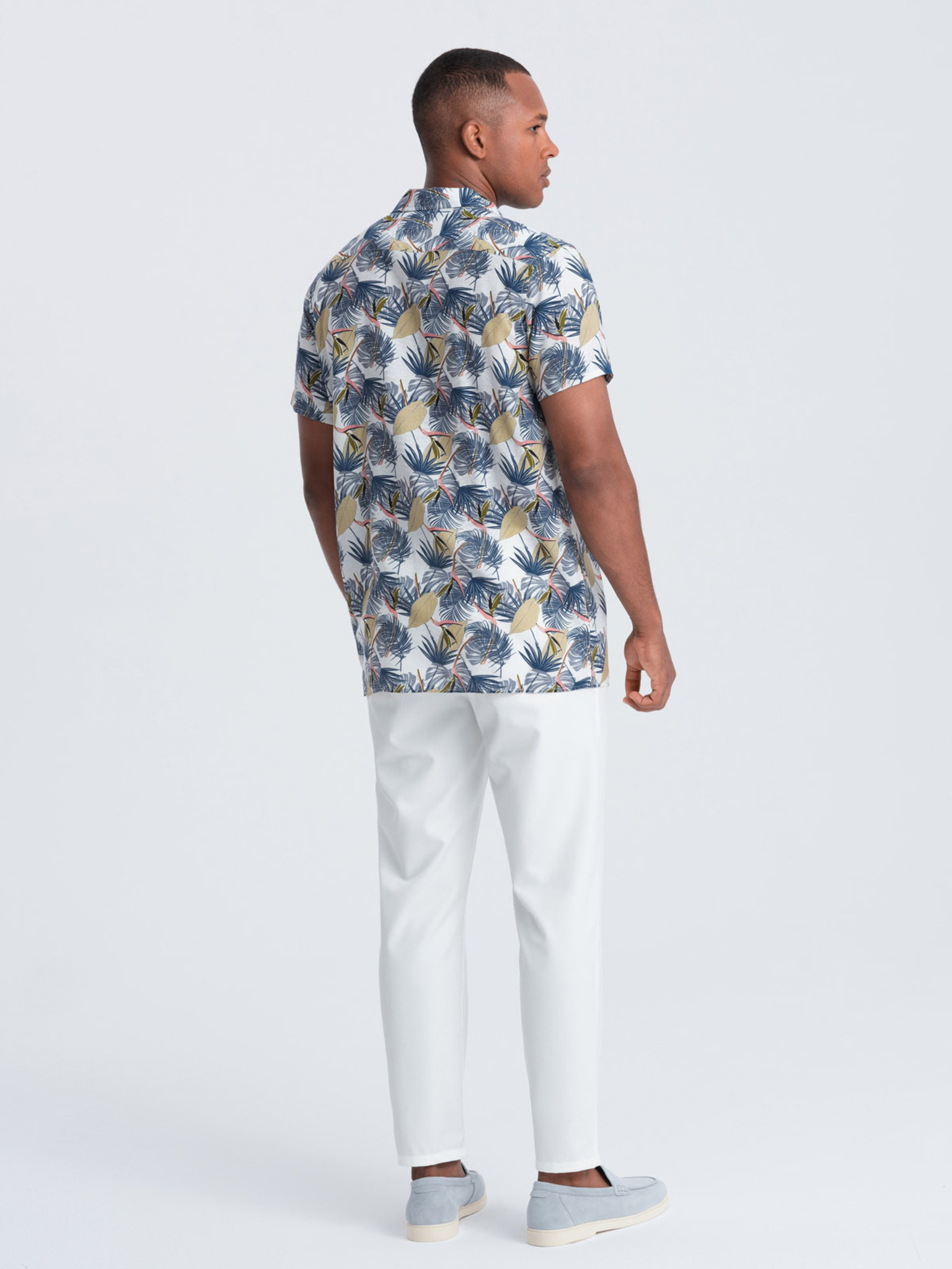 Pánske viskózové vzorované tričko s krátkym rukávom OM-SHPS-0113 Ombre Clothing biele
