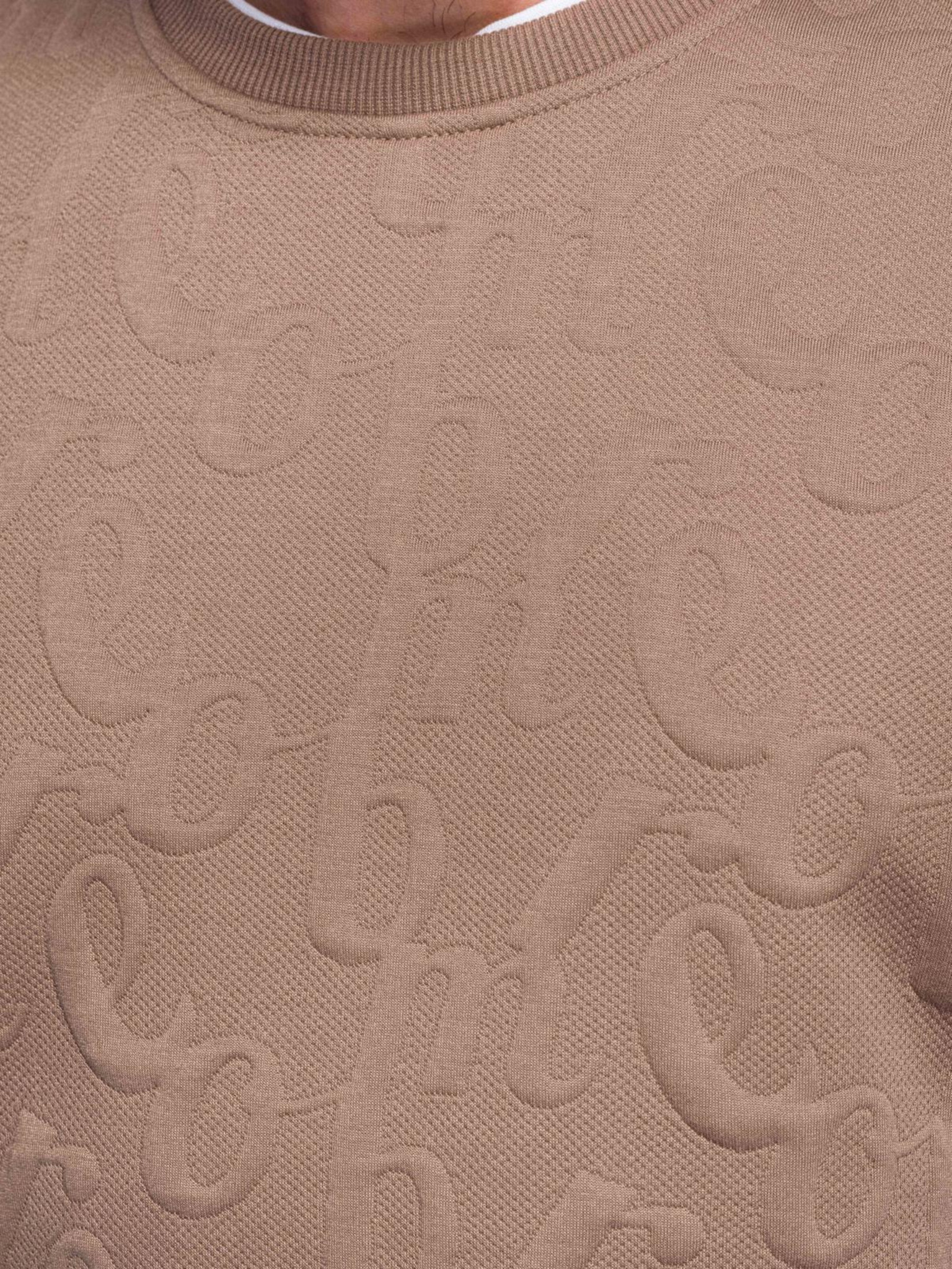Klasická pánska mikina s okrúhlym výstrihom - svetlo hnedá V3 OM-SSNZ-0243 Ombre Clothing