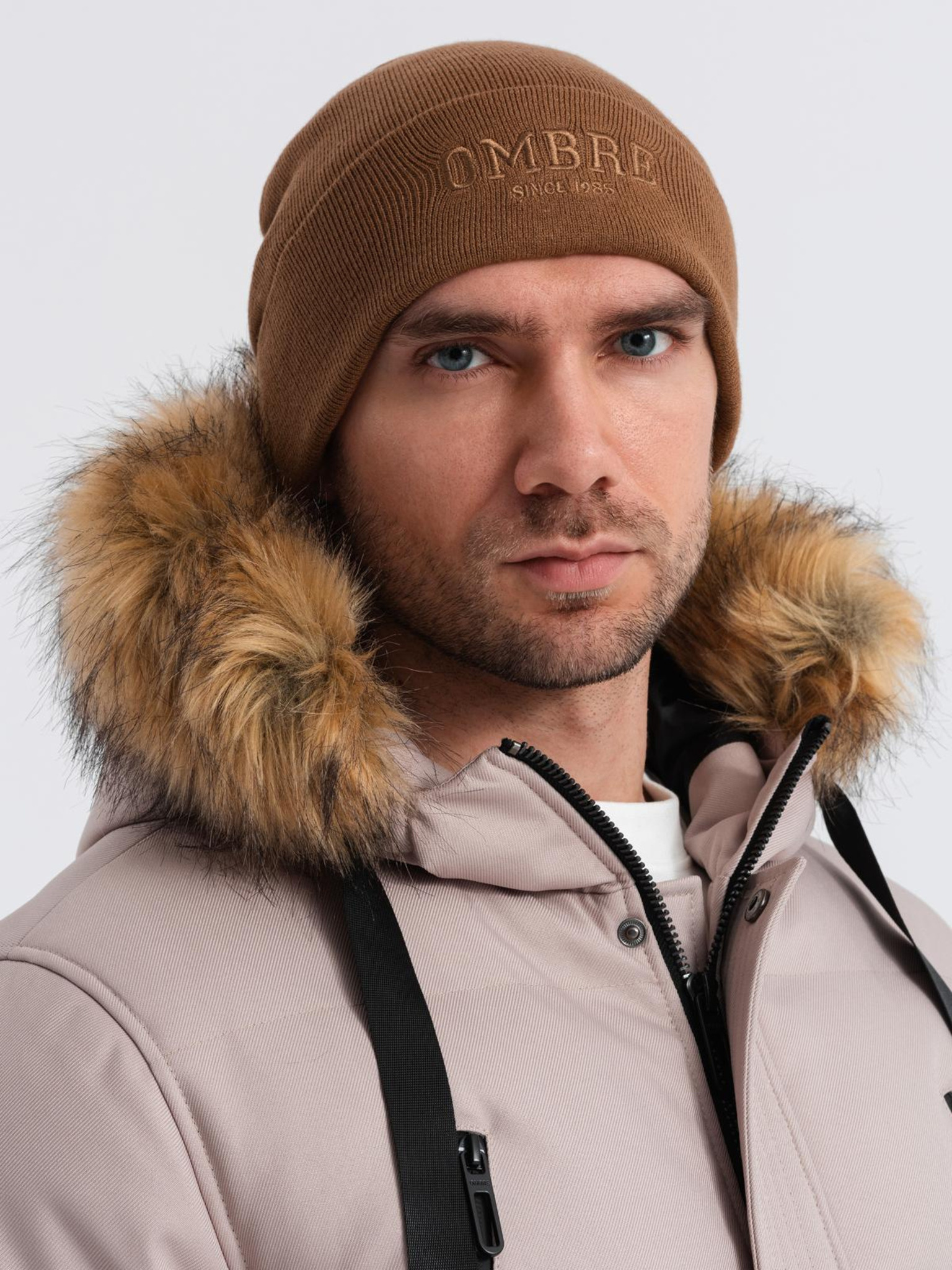 Pánska pletená čiapka s vyšitým nápisom Ombre Clothing