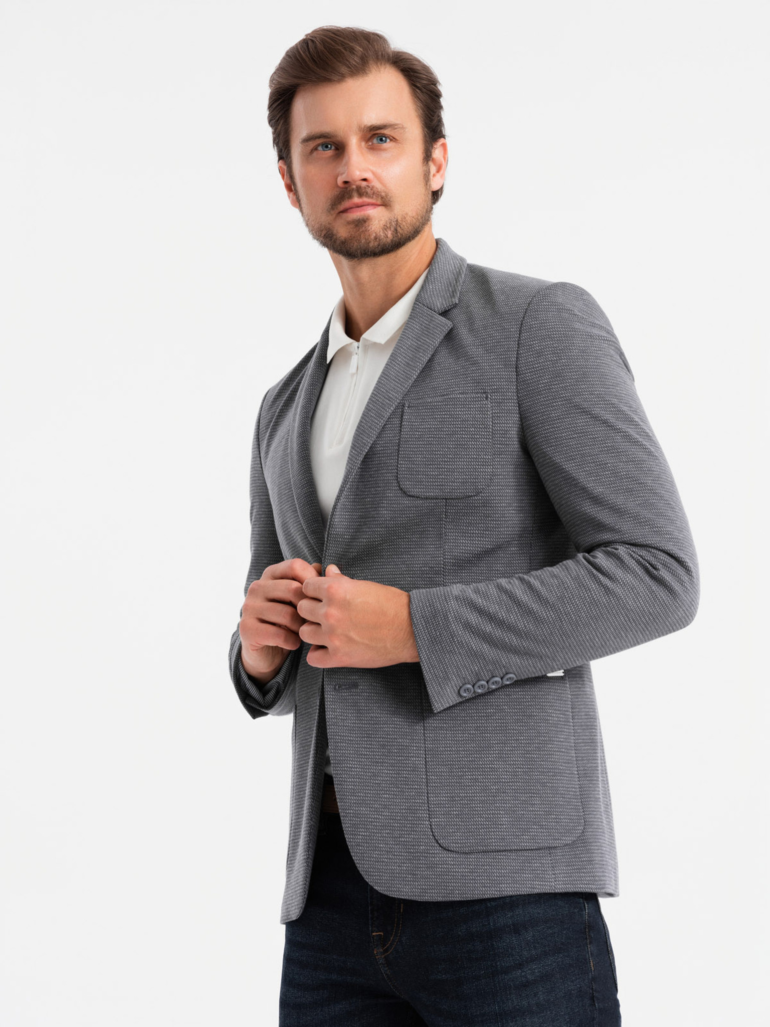 Pánske sivé sako SLIM z jemne štruktúrovanej pleteniny