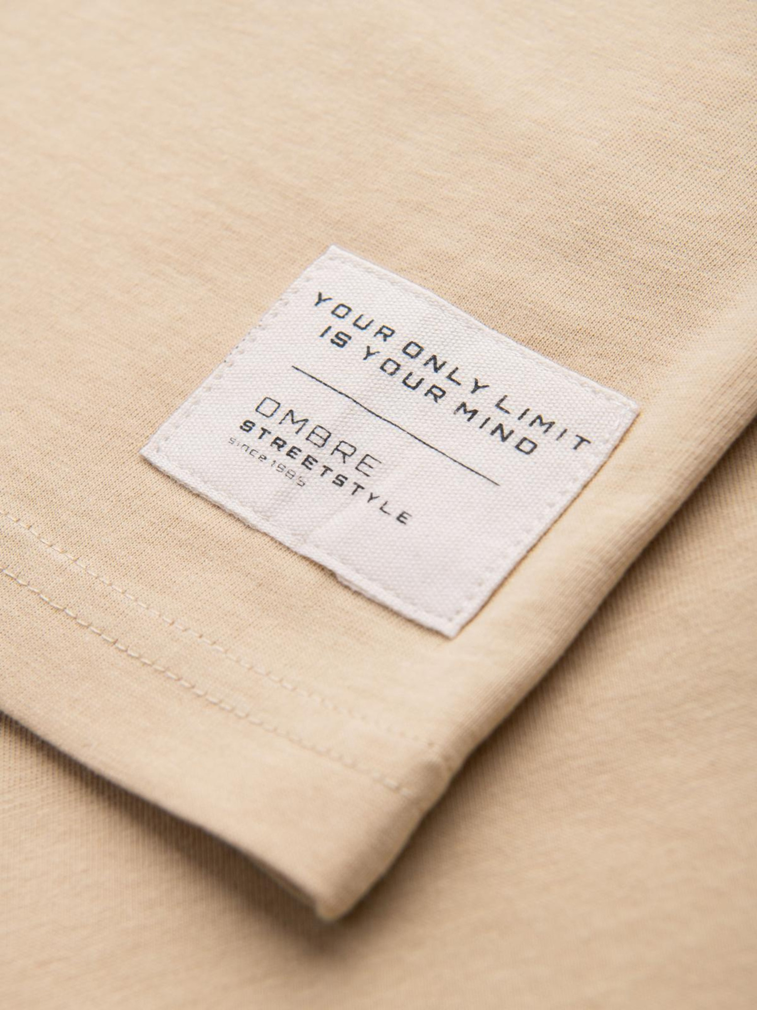 Pánske bavlnené tričko LOOSE FIT s okrúhlym výstrihom - ecru V2 OM-TSBC-0267 Ombre Clothing