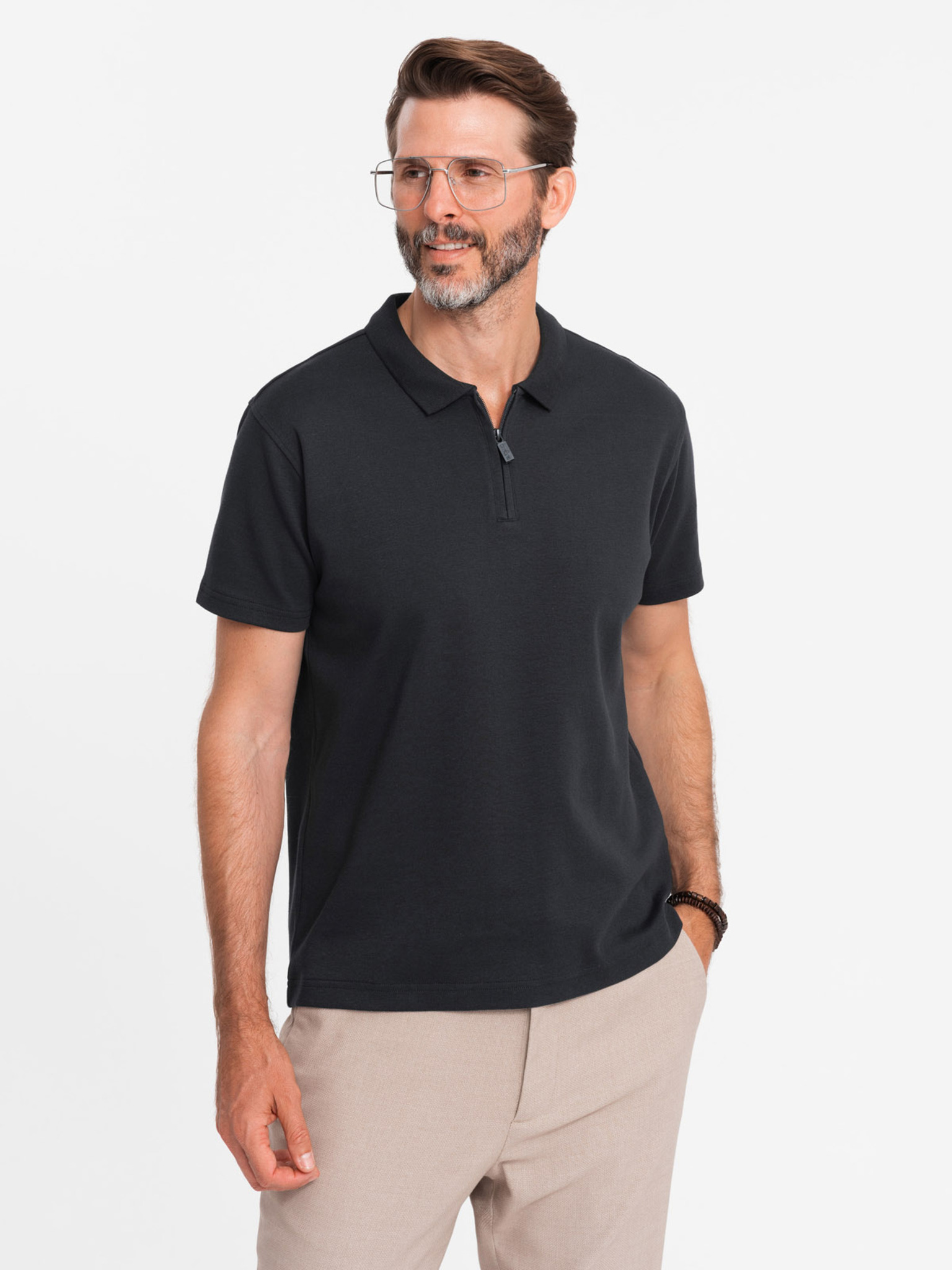 Pánske polo tričko s ozdobnými gombíkmi - tmavo olivovo zelené V5 S1744 Ombre Clothing