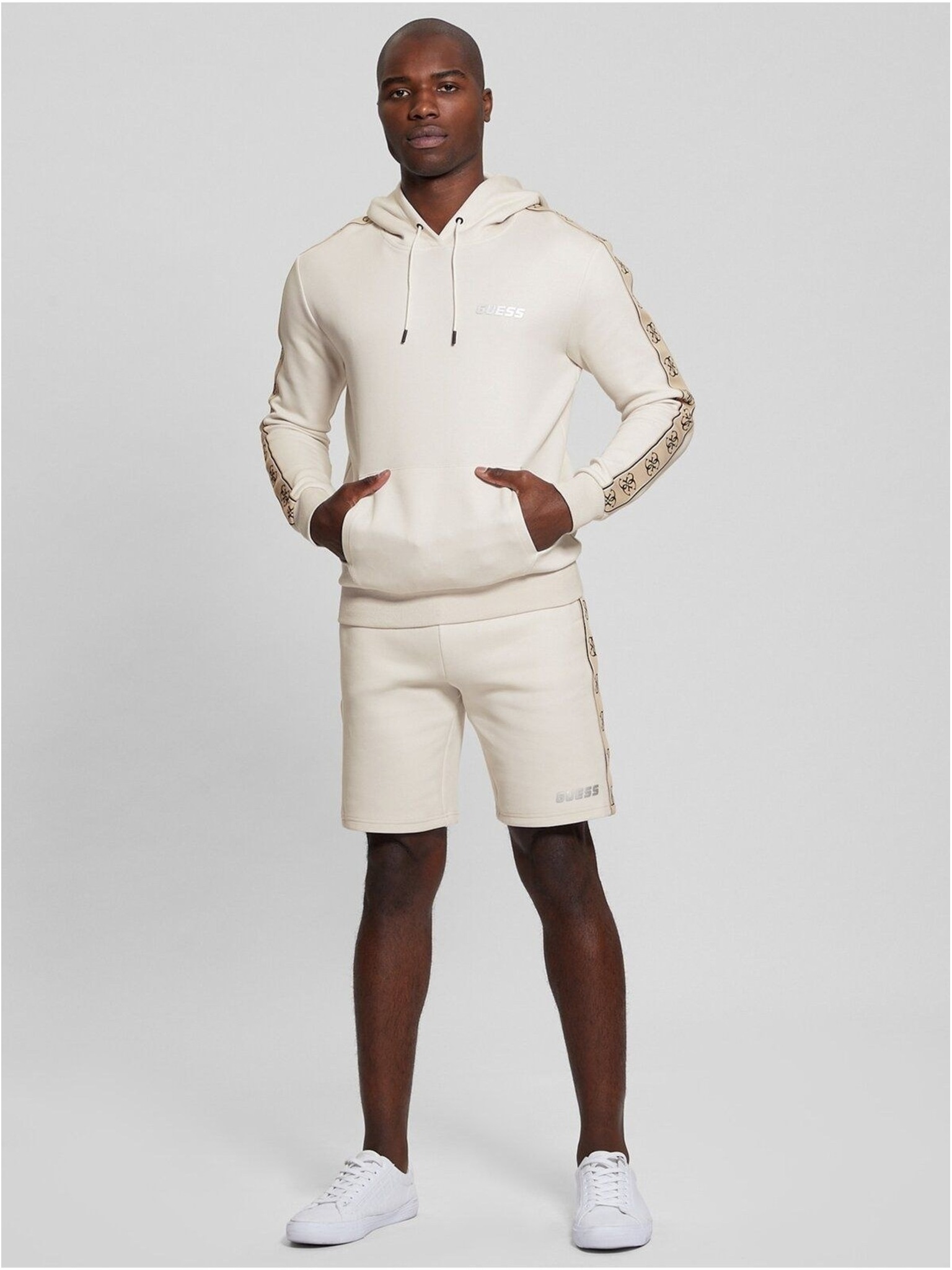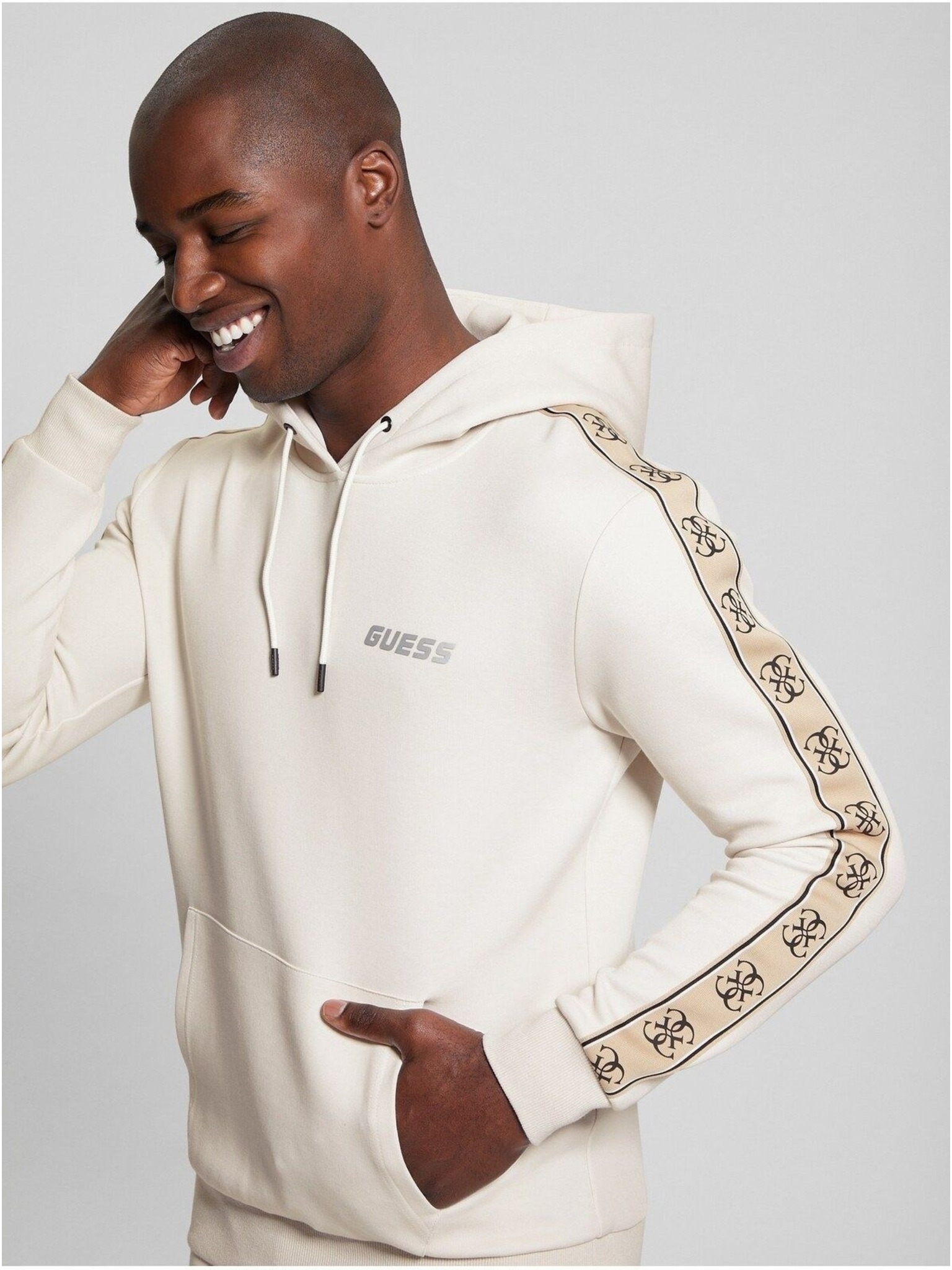 Pánsky biely sveter s pruhom Guess jeans