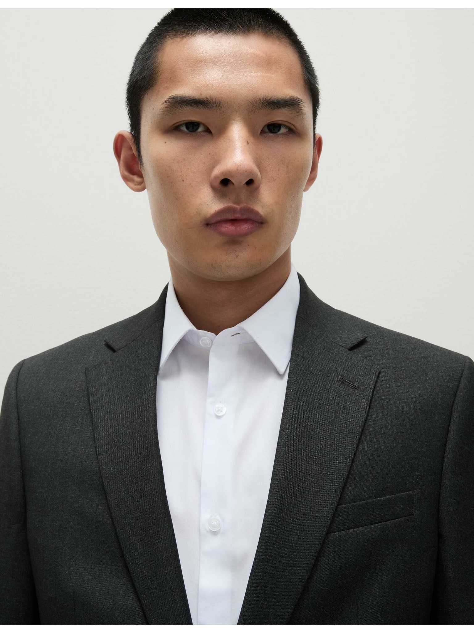 Pánska plátená košeľa so stojačikom a vreckom REGULAR FIT - krémová