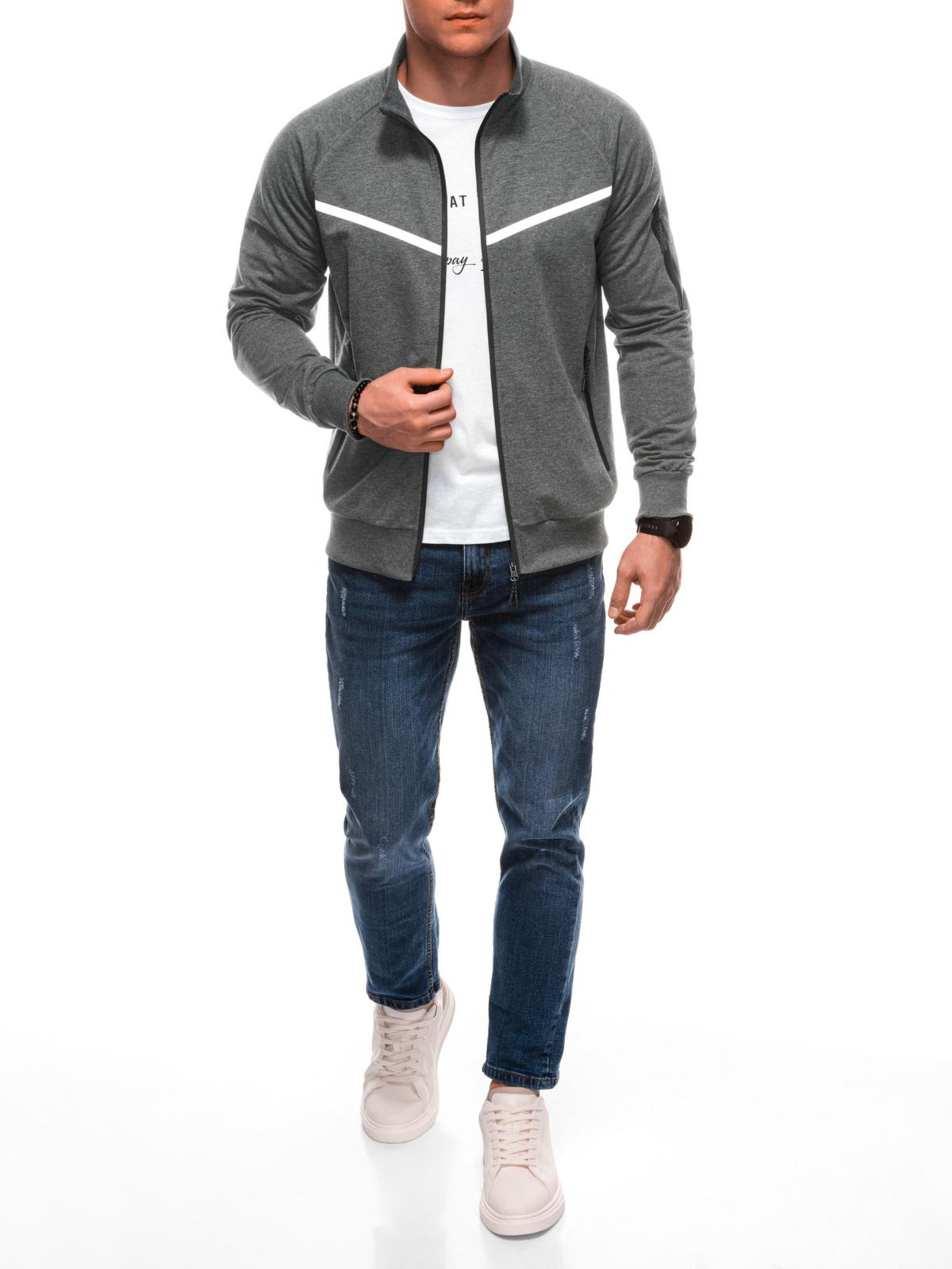 EDOTI Pánska mikina bez kapuce, sivá