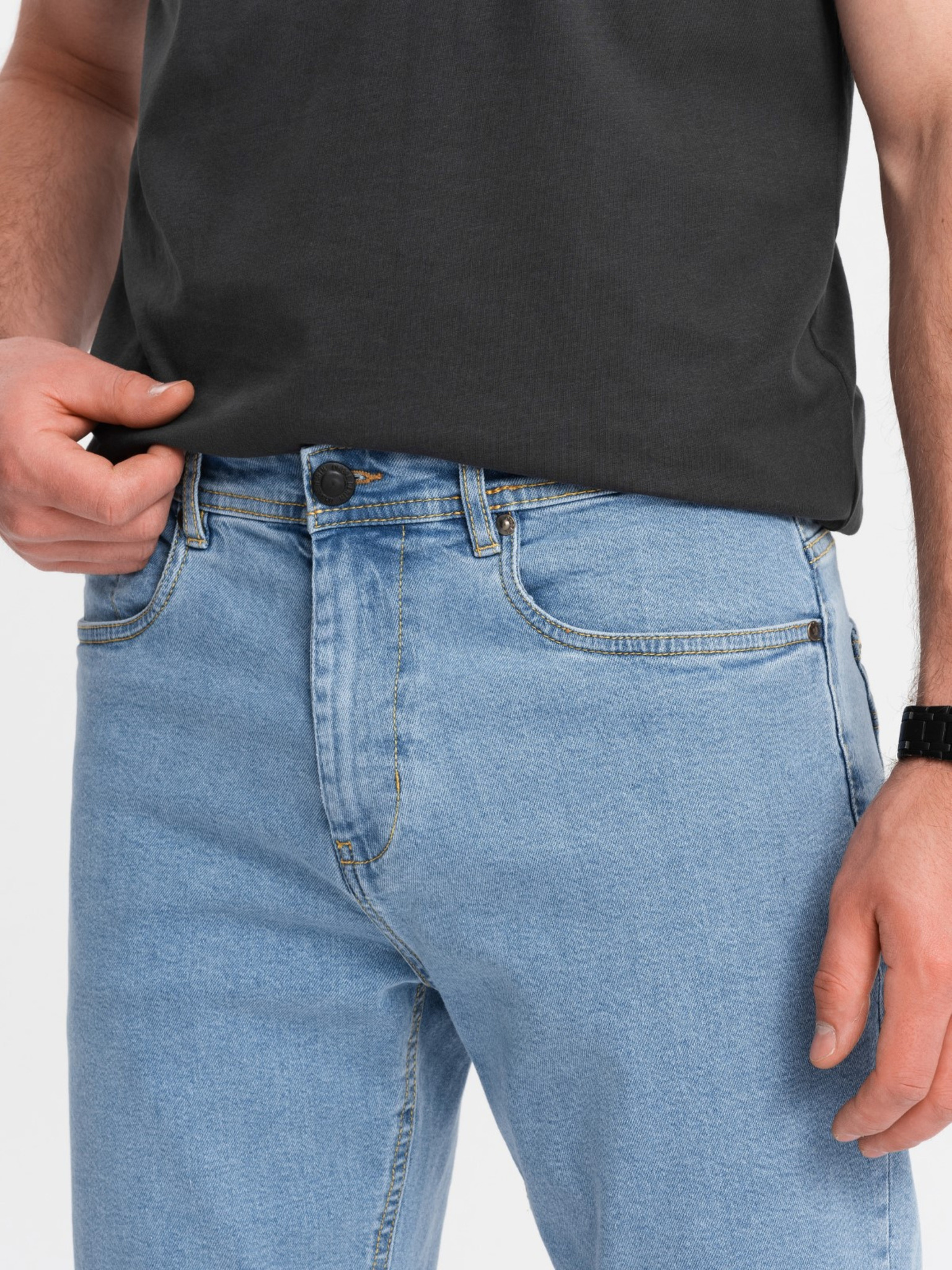 Pánske šortky s elastickým pásom a praným efektom - svetlo modré
