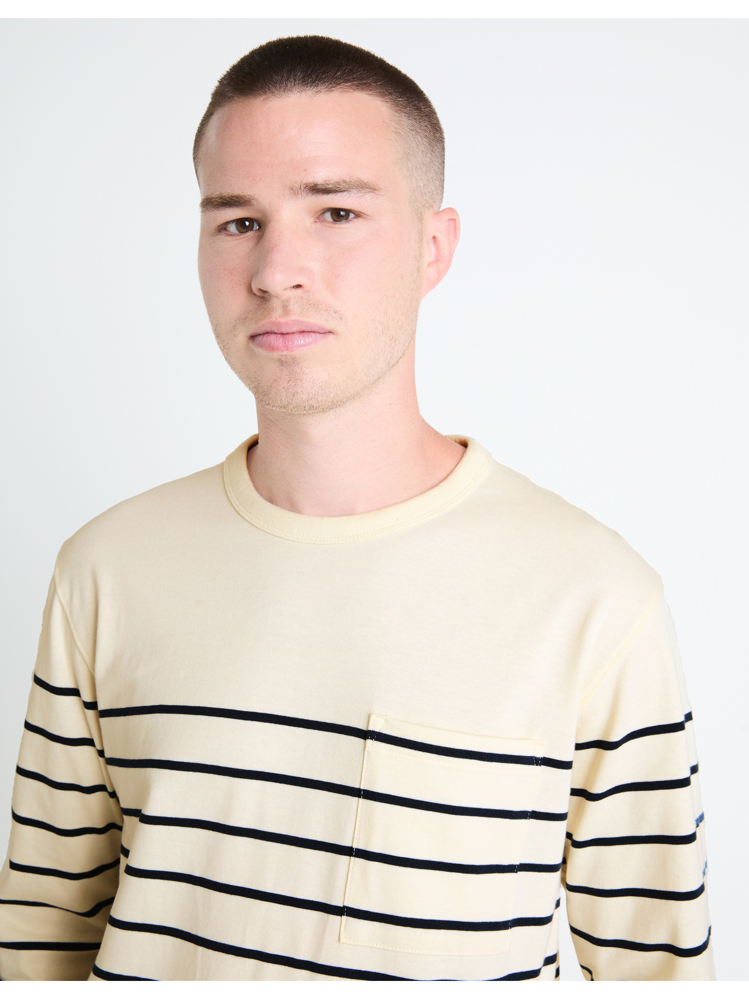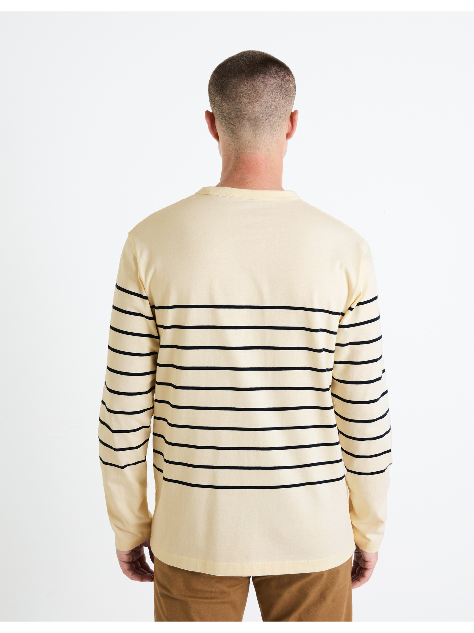 Pánska polokošeľa s dlhým rukávom a vodorovným pruhom z viskózy - biela a béžová