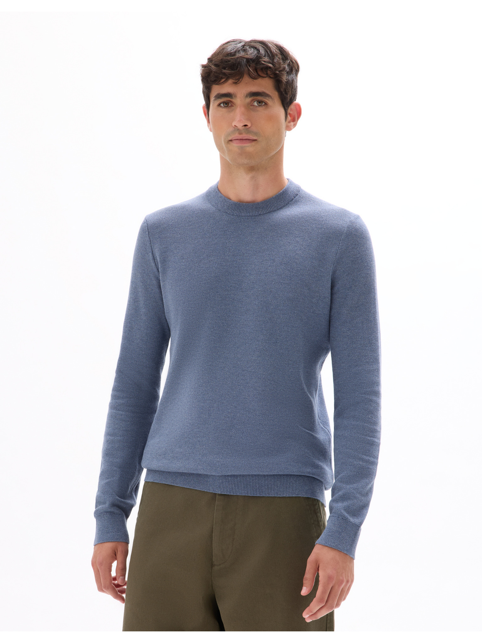 Pánsky pletený sveter RELAXED FIT so vzorom modrý Oblečenie Ombre