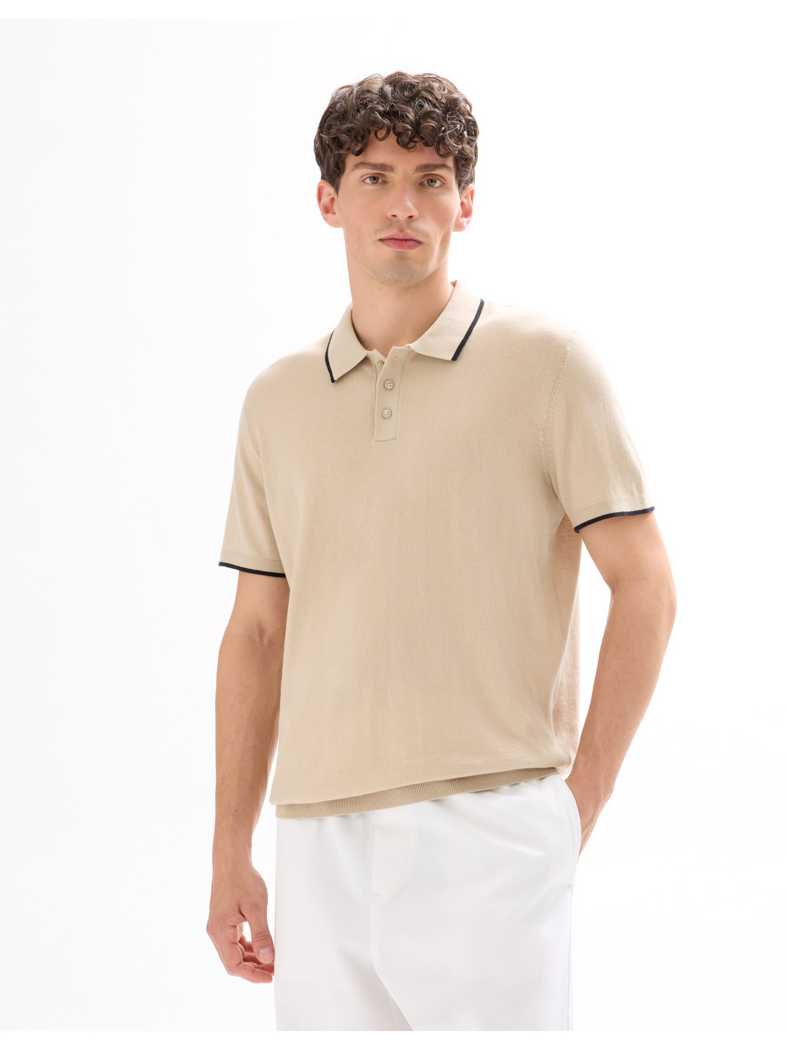 Béžové pánske polo tričko Ombre Clothing