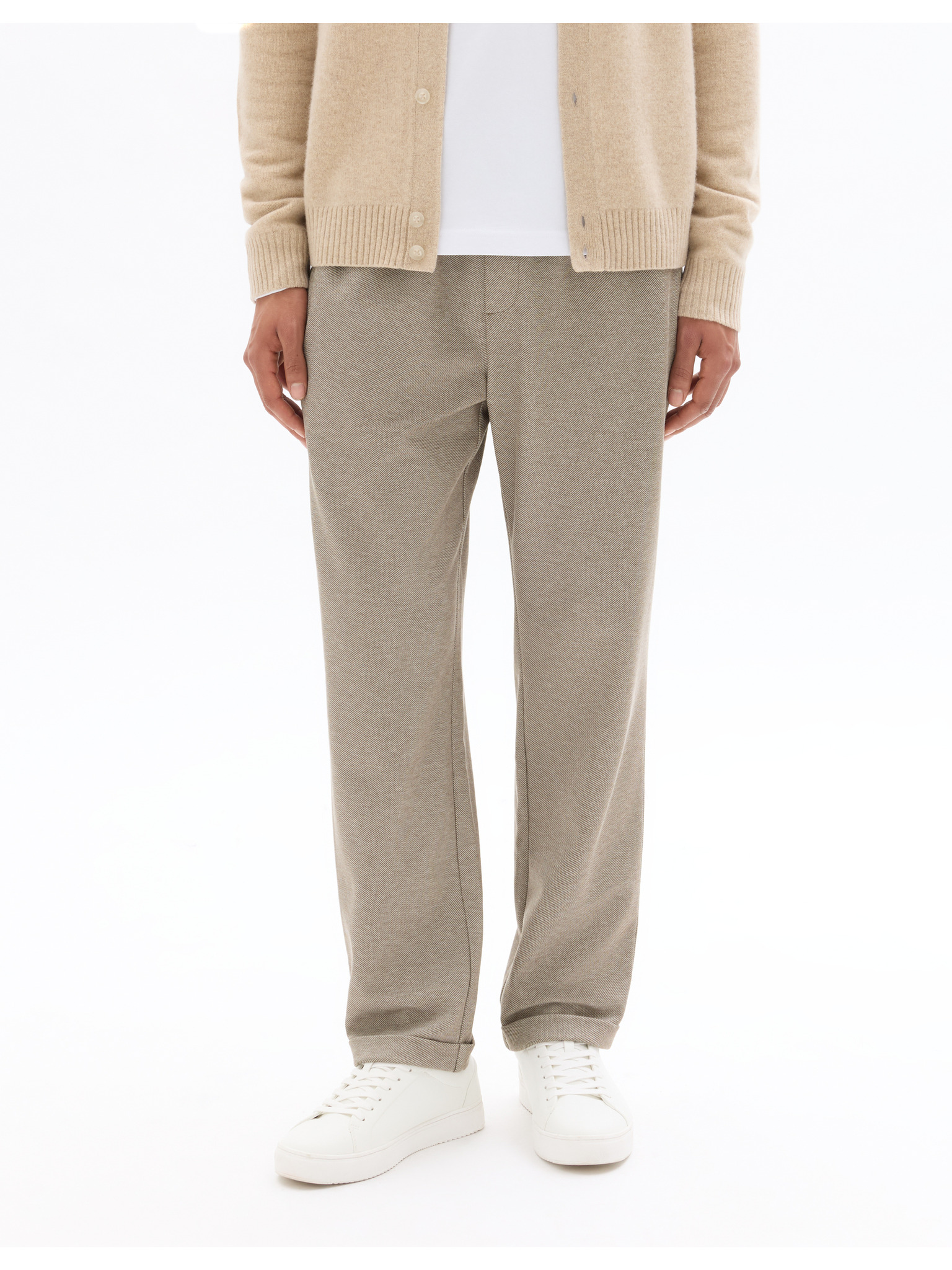 Nohavice so vzorom rybacej kosti, z čistej bavlny Marks & Spencer hnedá