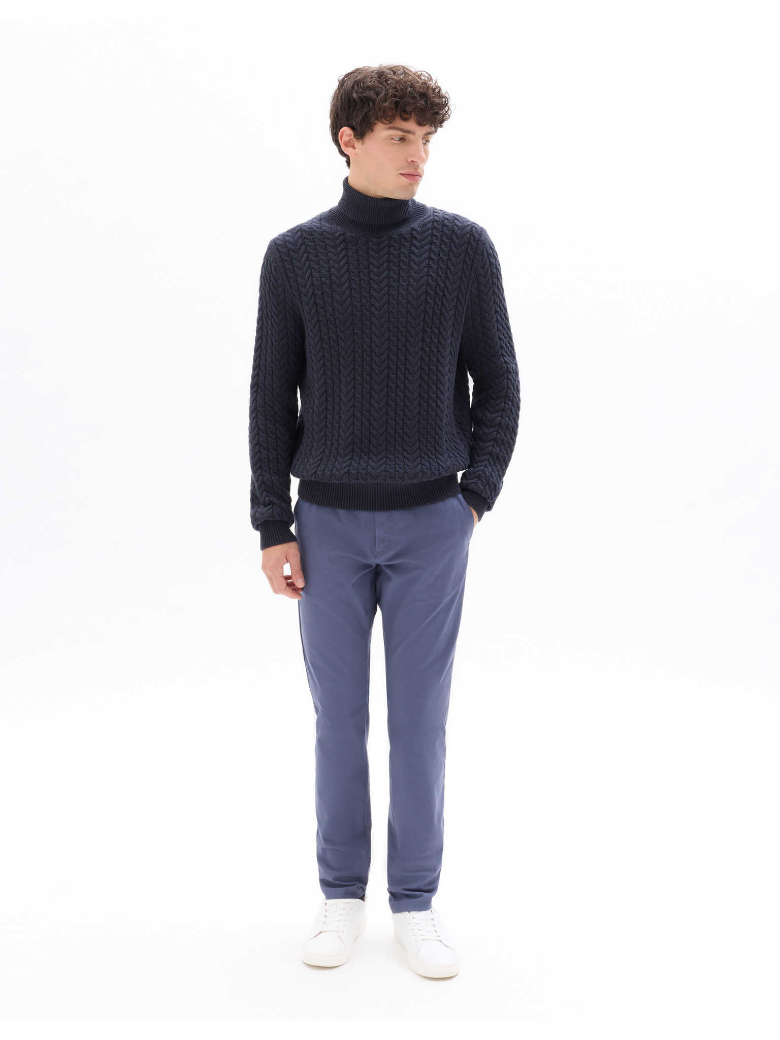 Pánsky pletený sveter so štruktúrovanými bodkami - tmavomodrý Oblečenie Ombre