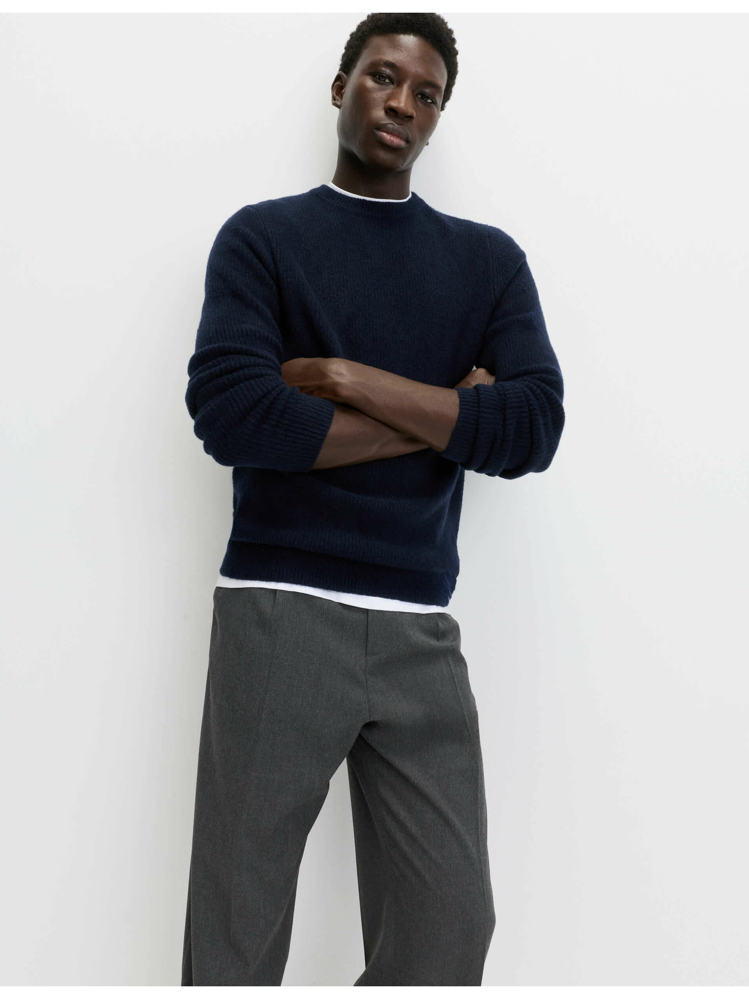 Rebrovaný sveter so stojačikom, z mimoriadne mäkkej priadze s prímesou vlny Marks & Spencer námorná modrá