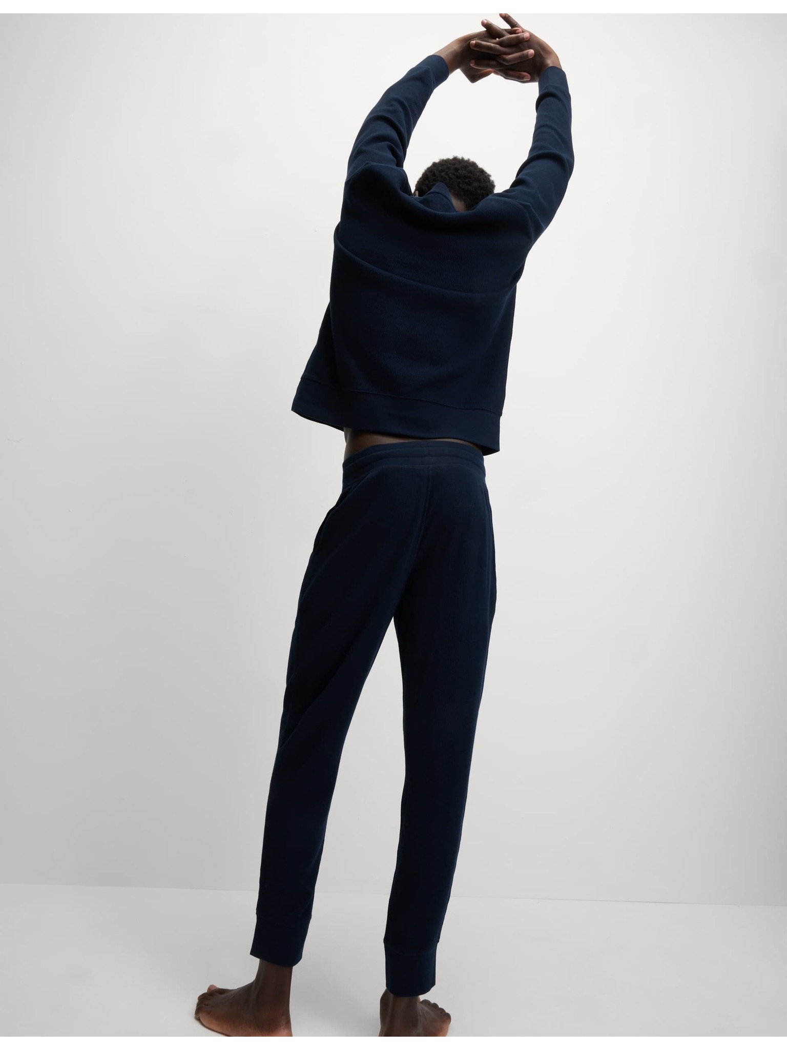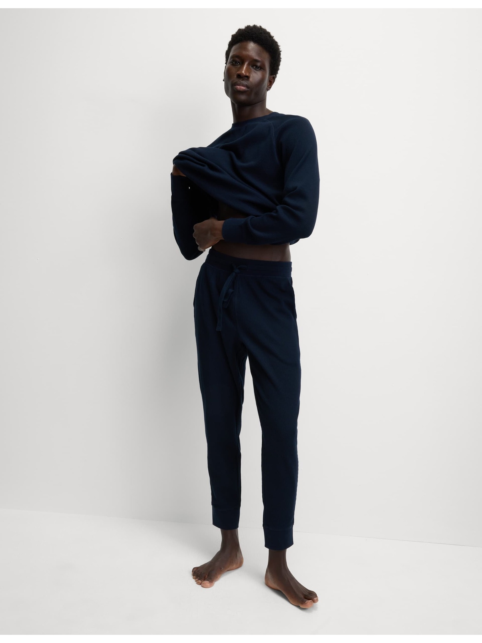 Pyžamová súprava z čistej bavlny s vafľovou textúrou Marks & Spencer námorná modrá