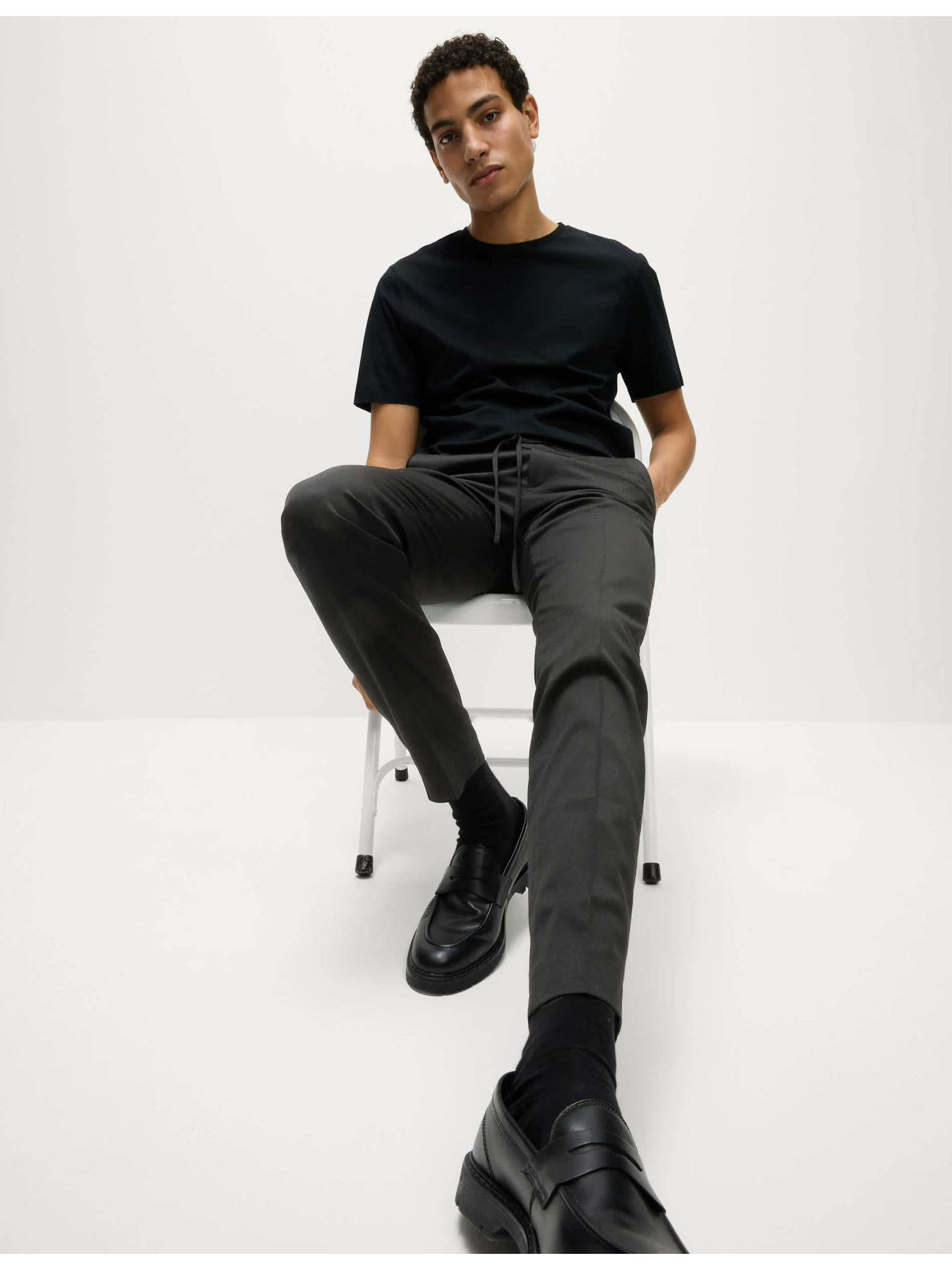Tepláky s rovnými nohavicami, sťahovacou šnúrkou a vysokým podielom bavlny Marks & Spencer čierna