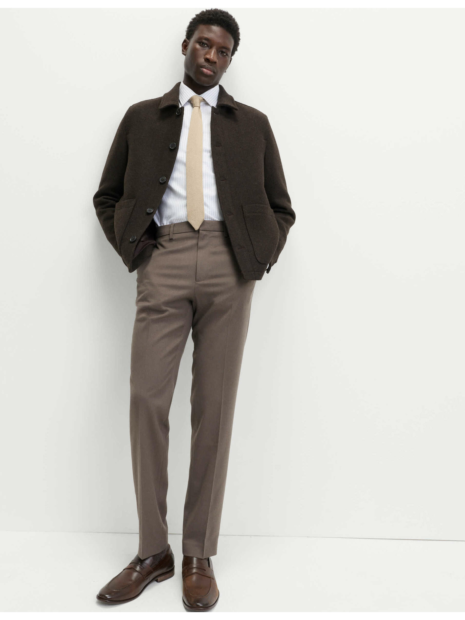 Hladké nohavice voľného strihu s jemnými pásikmi Marks & Spencer hnedá