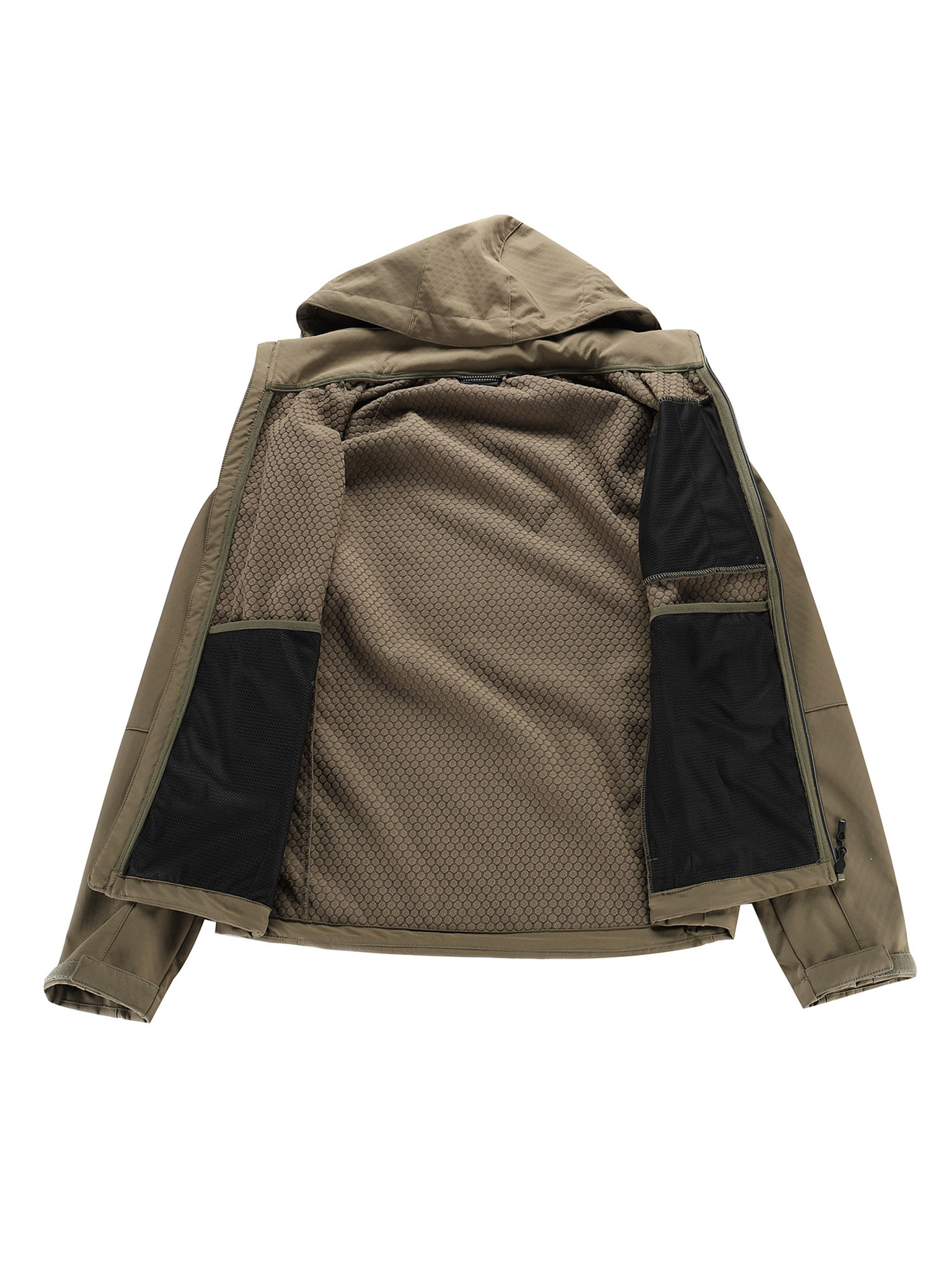 Pánska bunda s vysokým golierom a kapucňou svetlohnedá Ombre Oblečenie