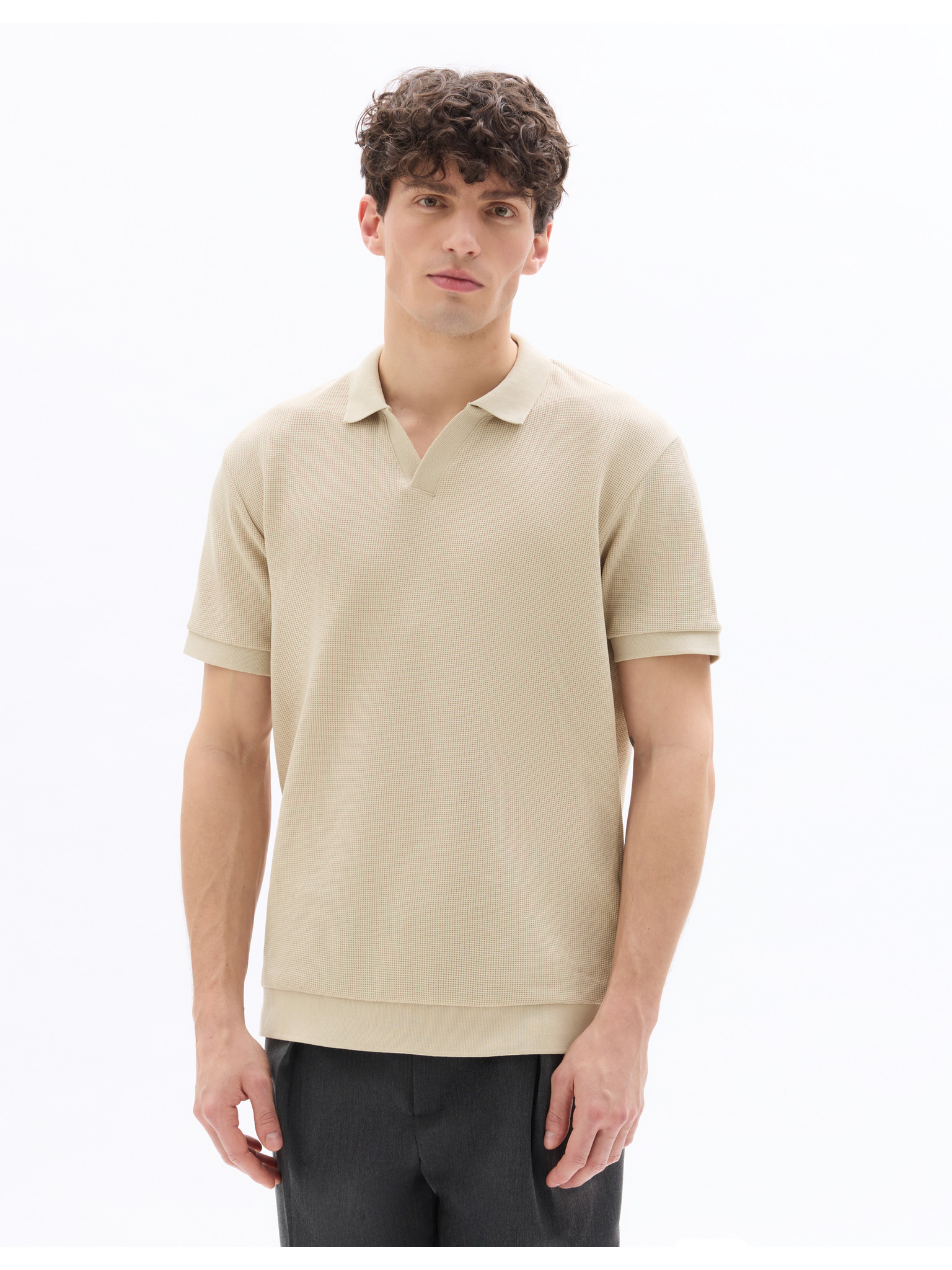 Béžové pánske polo tričko Ombre Clothing