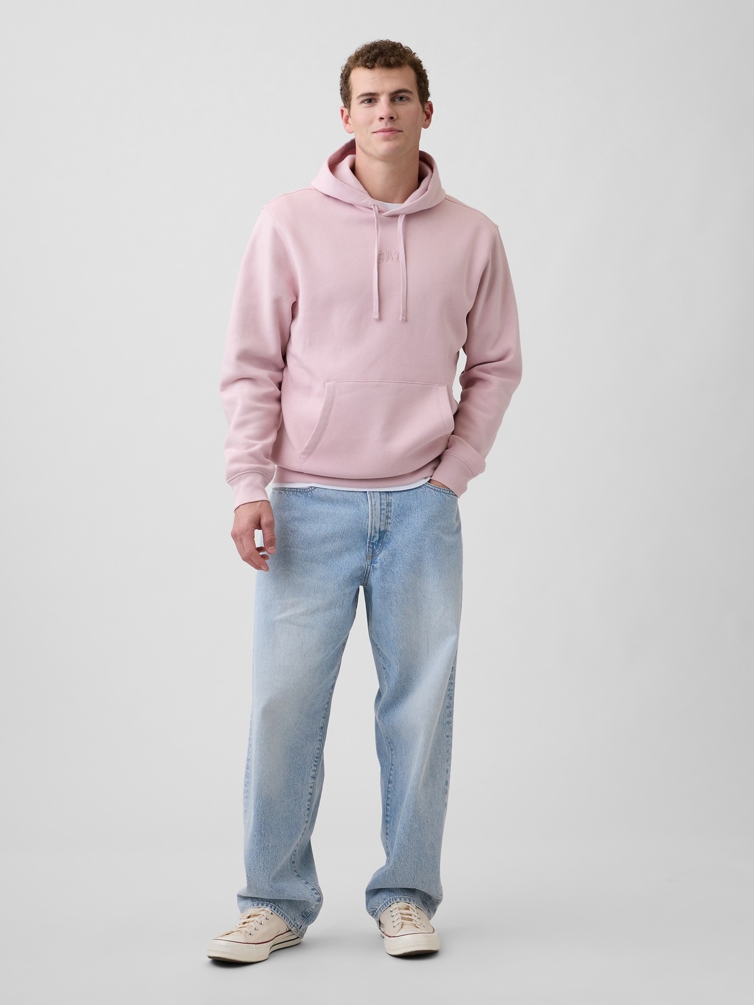 • Kapucňa so sťahovacími šnúrkami, spadnuté ramená a dlhé rukávy s pružnými manžetami vytvárajú ležérnu siluetu, ktorú dopĺňa decentné mini logo Gap na hrudi a praktické klokanie vrecko.