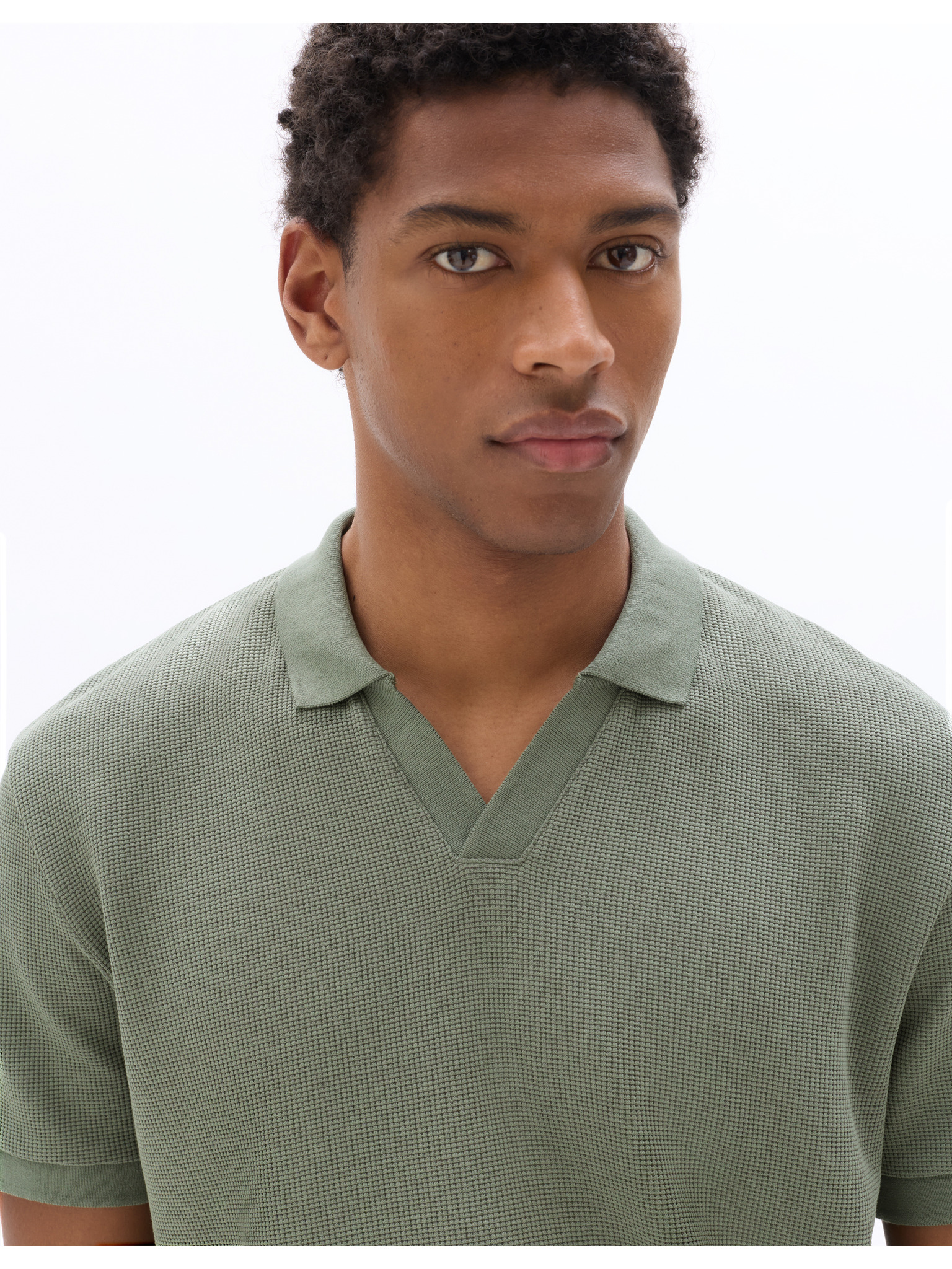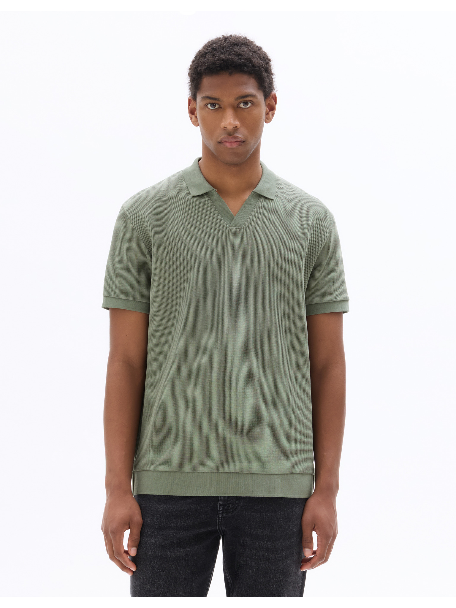 Pánska pletená polokošeľa bez gombíkov - olivová