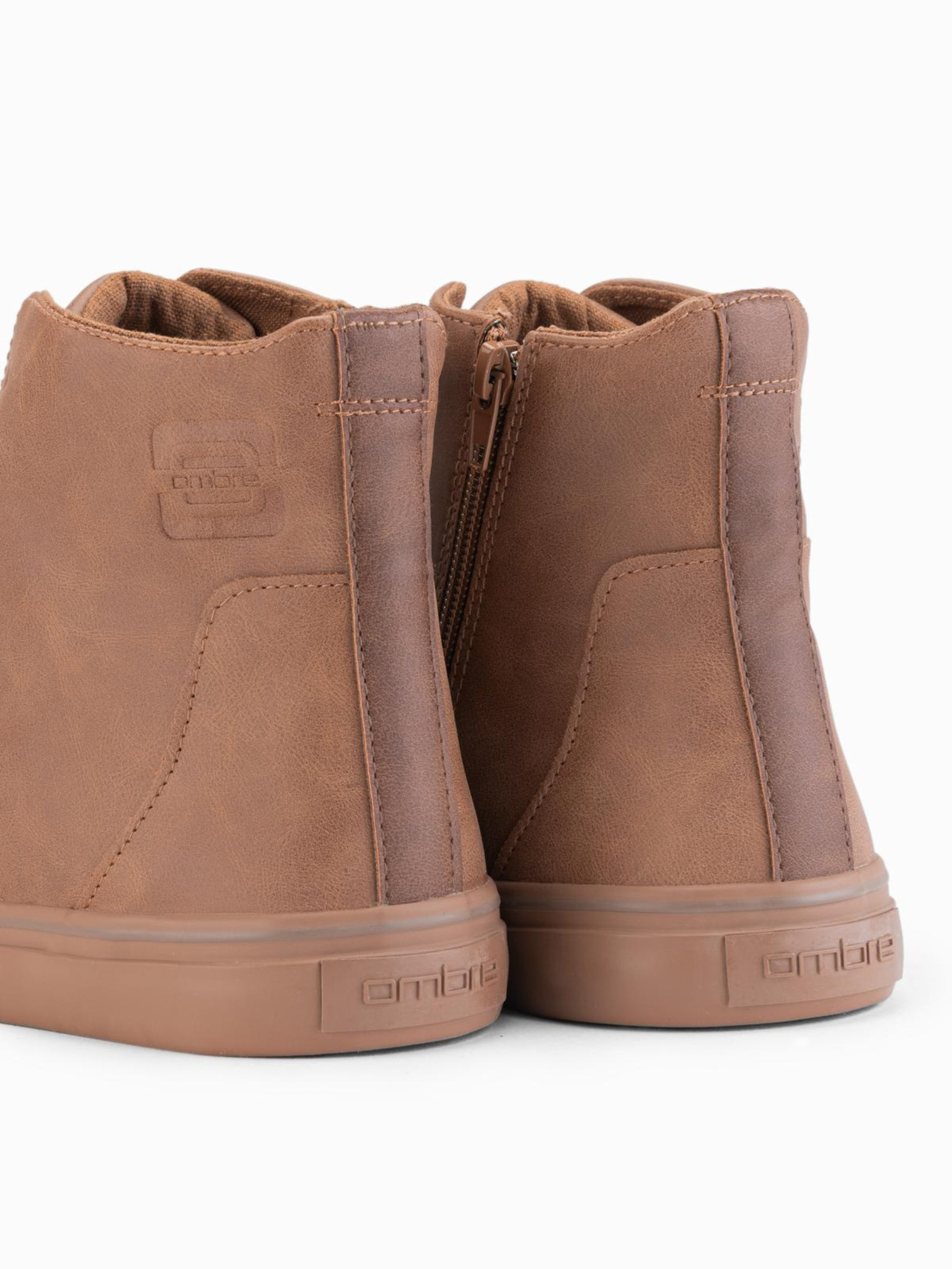 Pánske vysoké tenisky so zipsom pre ľahké nazouvanie - tmavo béžové V3 OM-FOTH-0184 Ombre Clothing